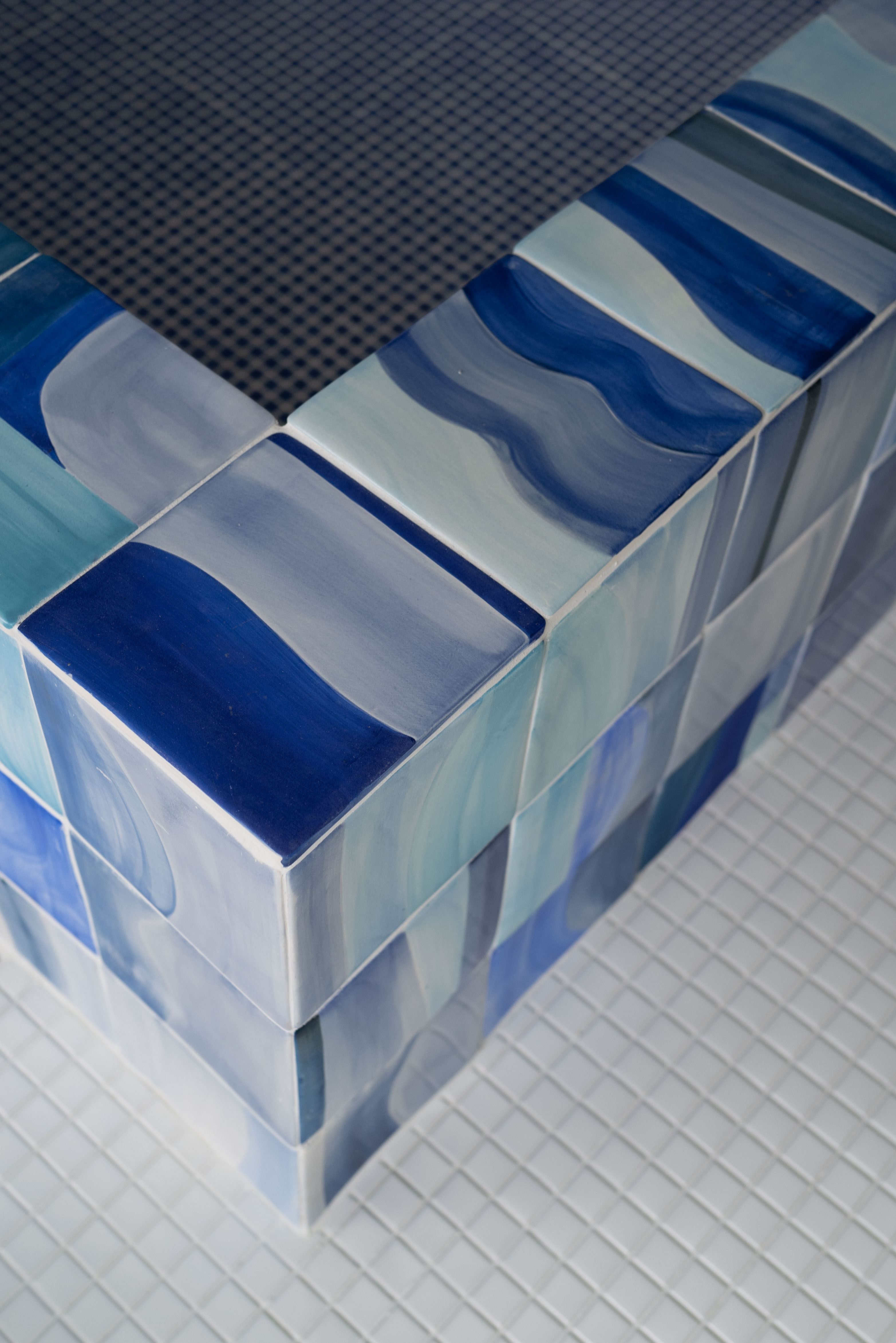 갤러리처럼 깨끗한 백색의 배경에서 빛나는 금속 소재와 클라이언트의 작업들이 단조로울 수 있는 공간에 생기를 더한다. 서윤정 작가가 직접 그린 패턴과 회화작업은 카펫과 타일등의 형태로 변형되어 공간 곳곳을 채우고있다.