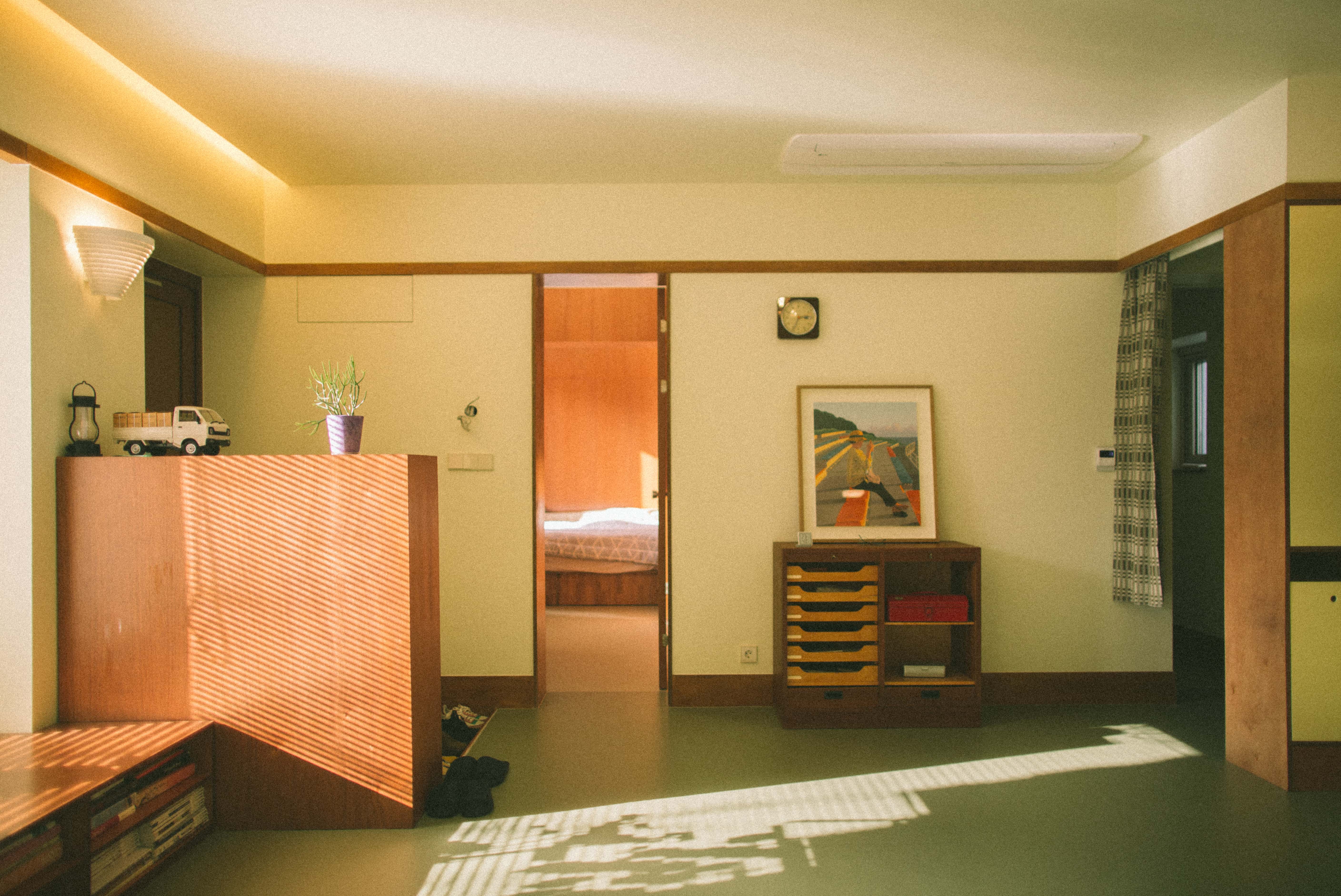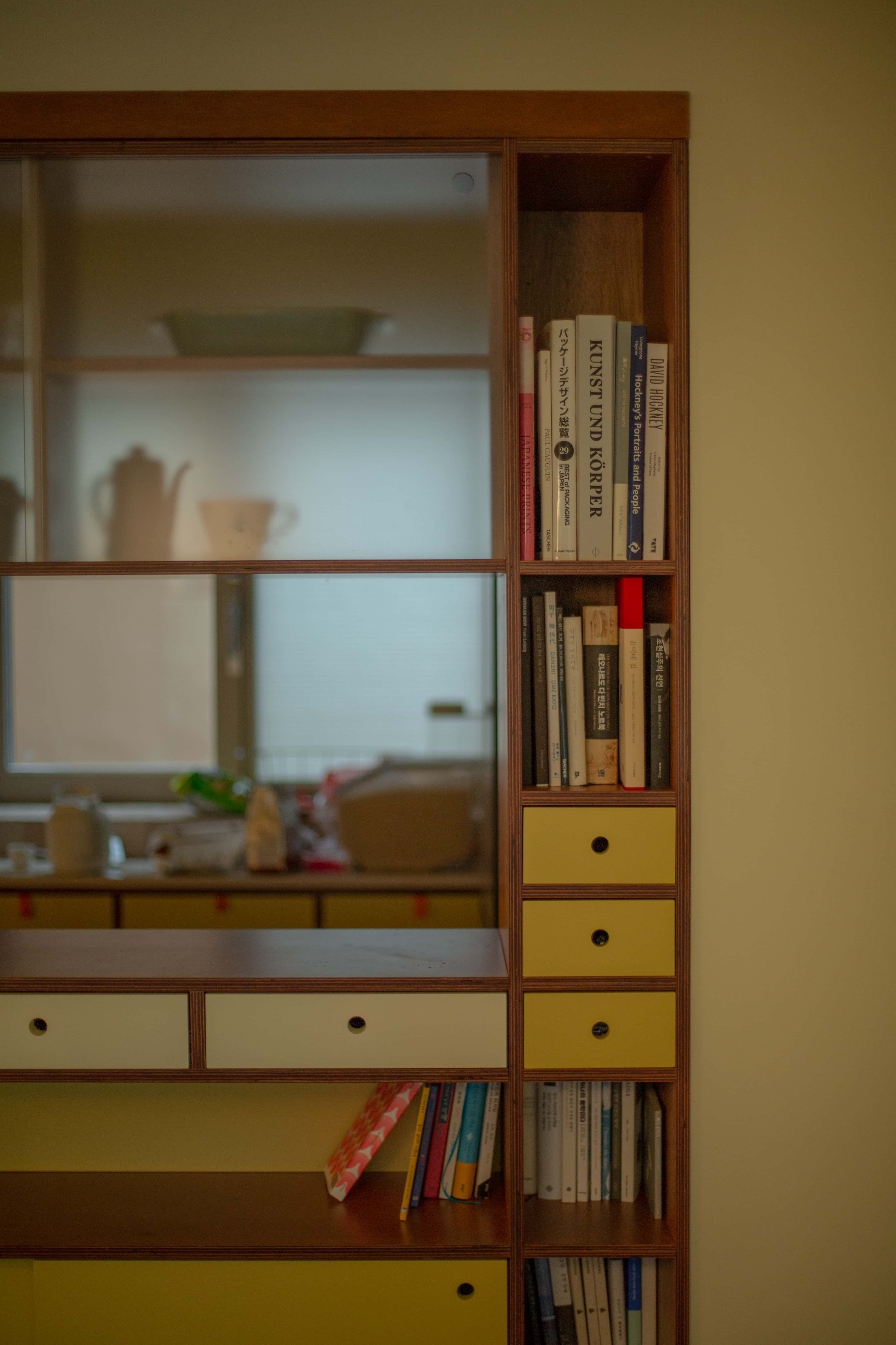 두사람이 좋아하는 소재인 나무와 연두, 노란빛의 색감을 중심으로 모든 붙박이 가구를 디자인하고 제작했다.