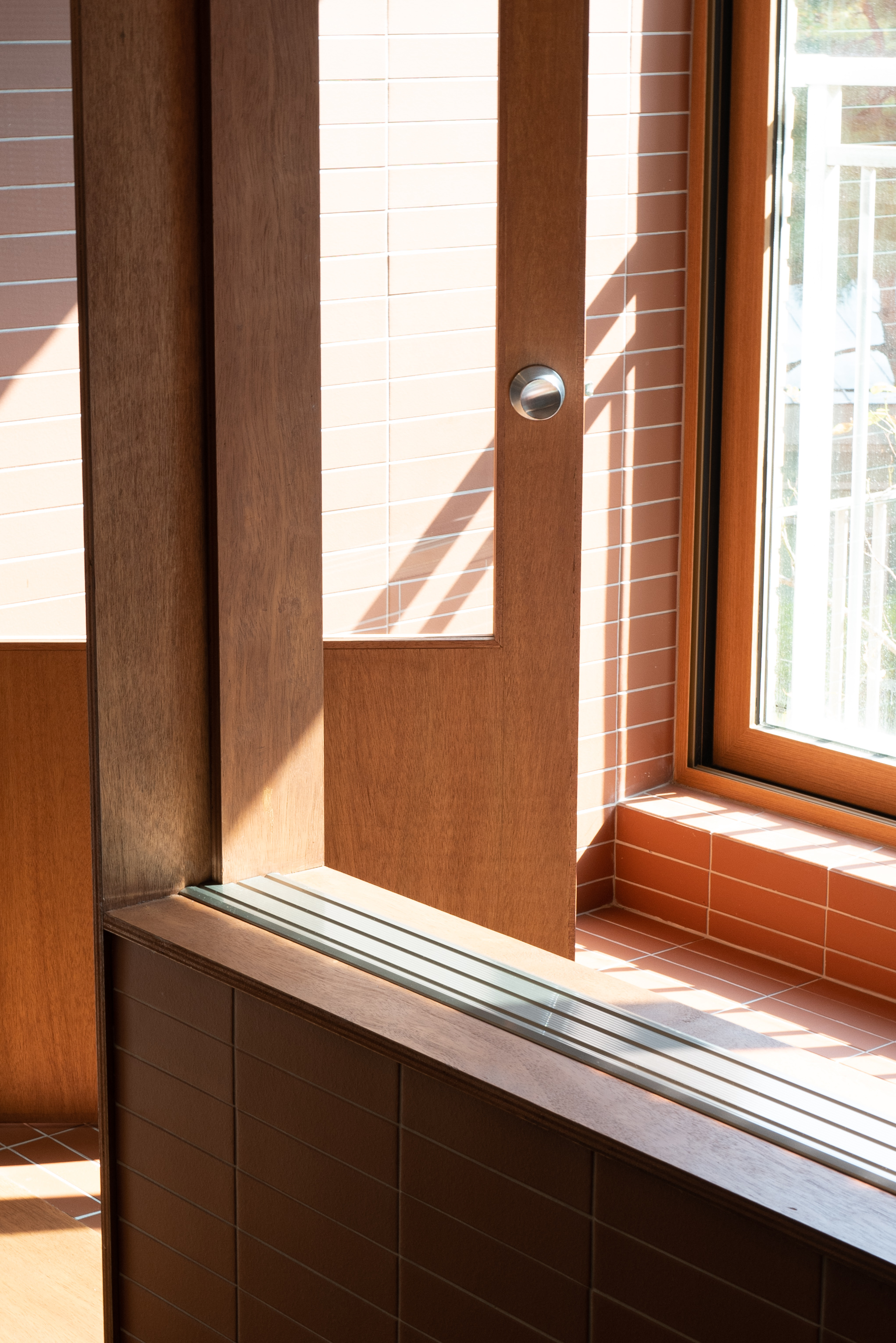실장님의 소중한 두딸의 별명에서 영감을 얻어 지어진 션샤이하우스라는 이름 그대로 햇살이 가득 들어오는 거실공간이 매력적이다. 1층이라 느낄수있는 창밖의 자연이 마치 아파트가 아닌 주택에 사는듯한 기분을 전해준다. 다양한 색과 소재가 쓰였지만 매스로 읽힐 수 있도록 디테일을 정리했다.
