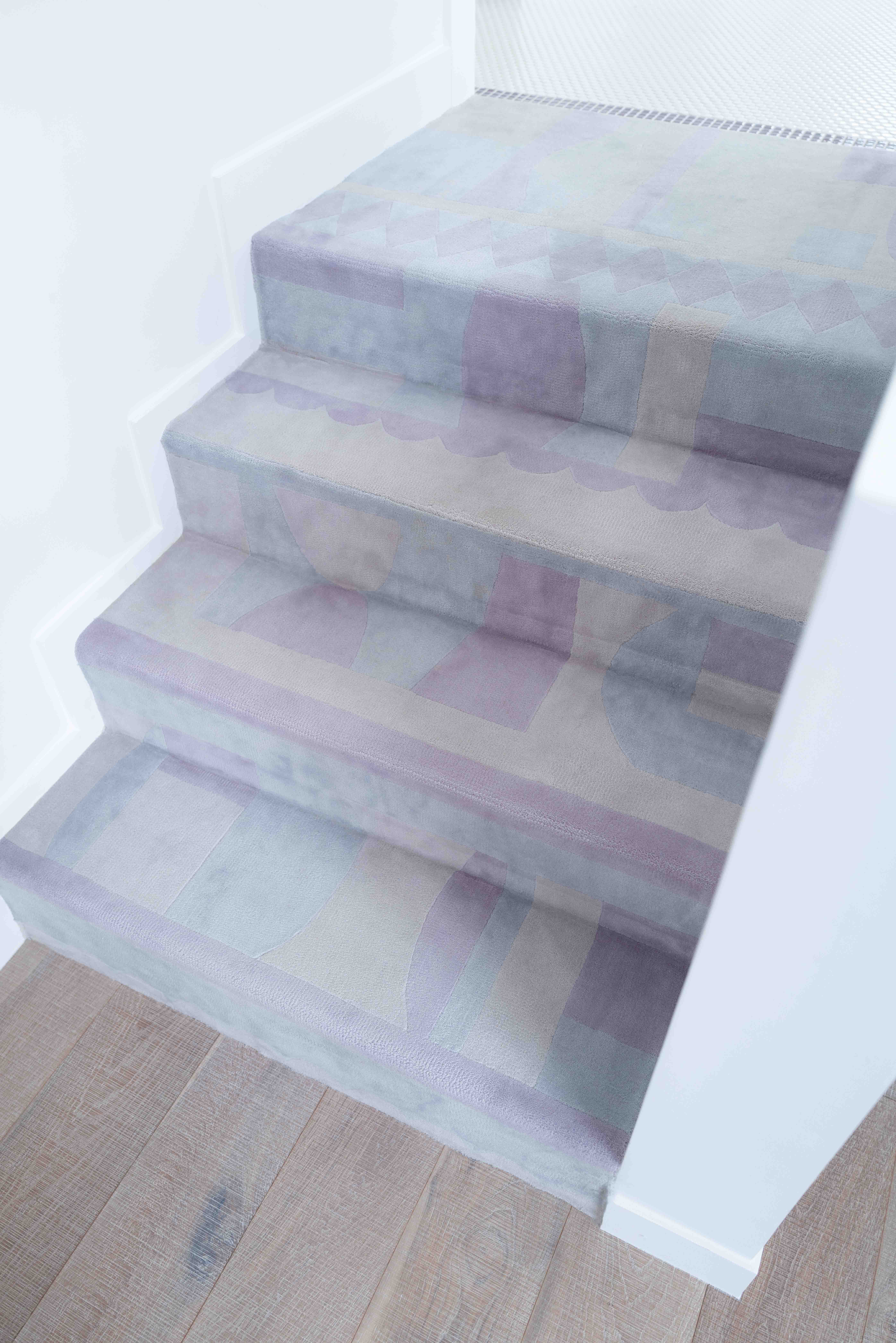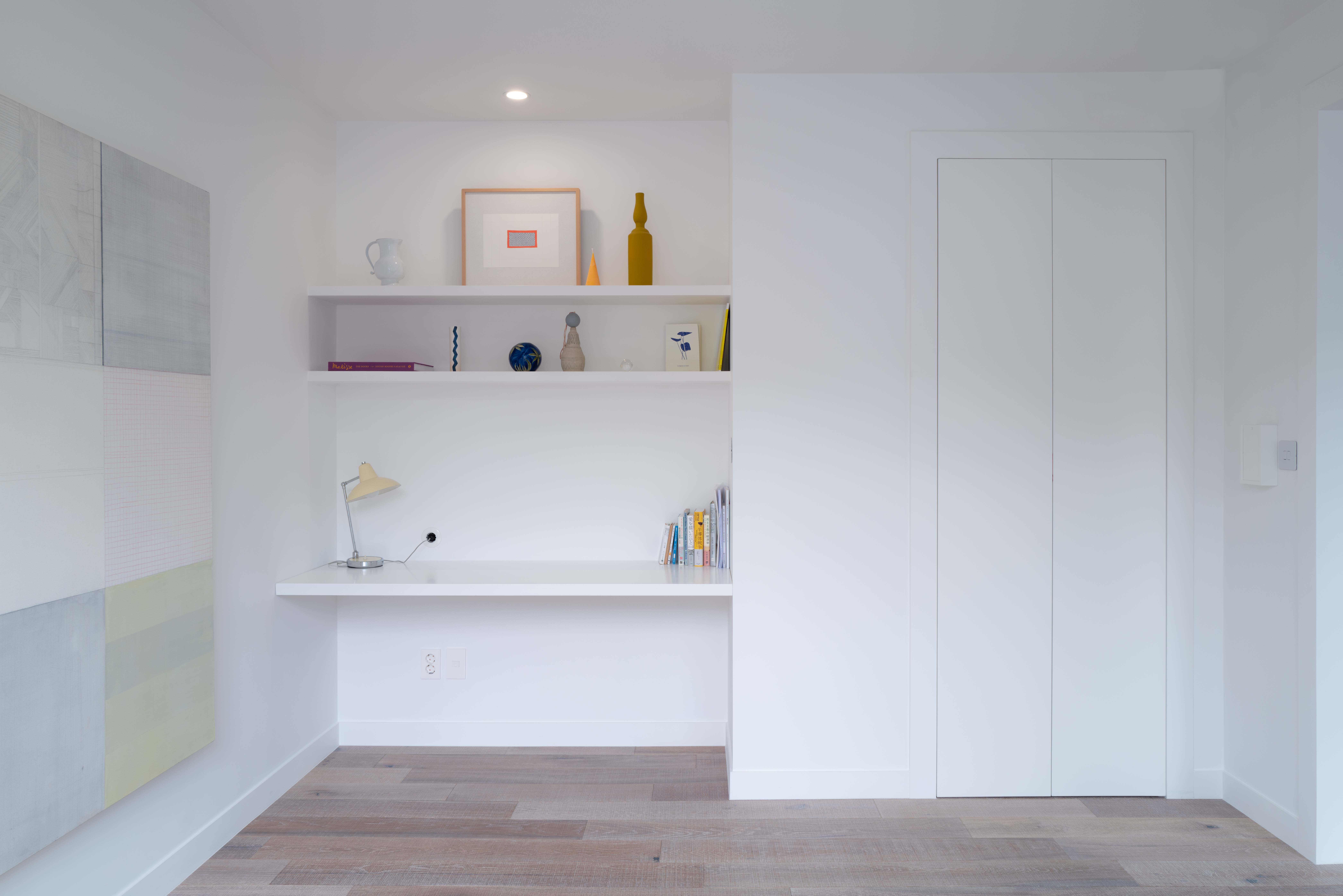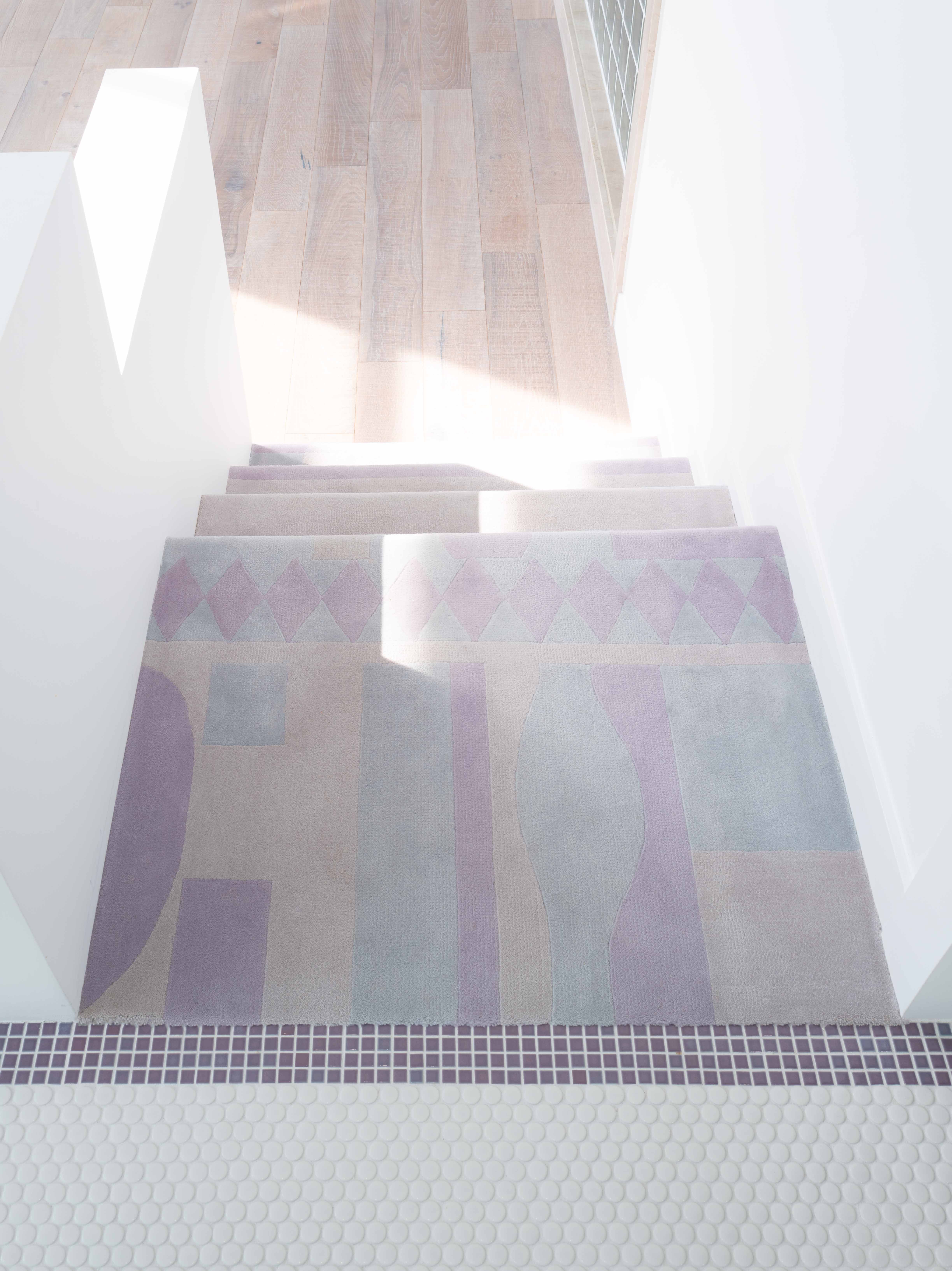 갤러리처럼 깨끗한 백색의 배경에서 빛나는 금속 소재와 클라이언트의 작업들이 단조로울 수 있는 공간에 생기를 더한다. 서윤정 작가가 직접 그린 패턴과 회화작업은 카펫과 타일등의 형태로 변형되어 공간 곳곳을 채우고있다.