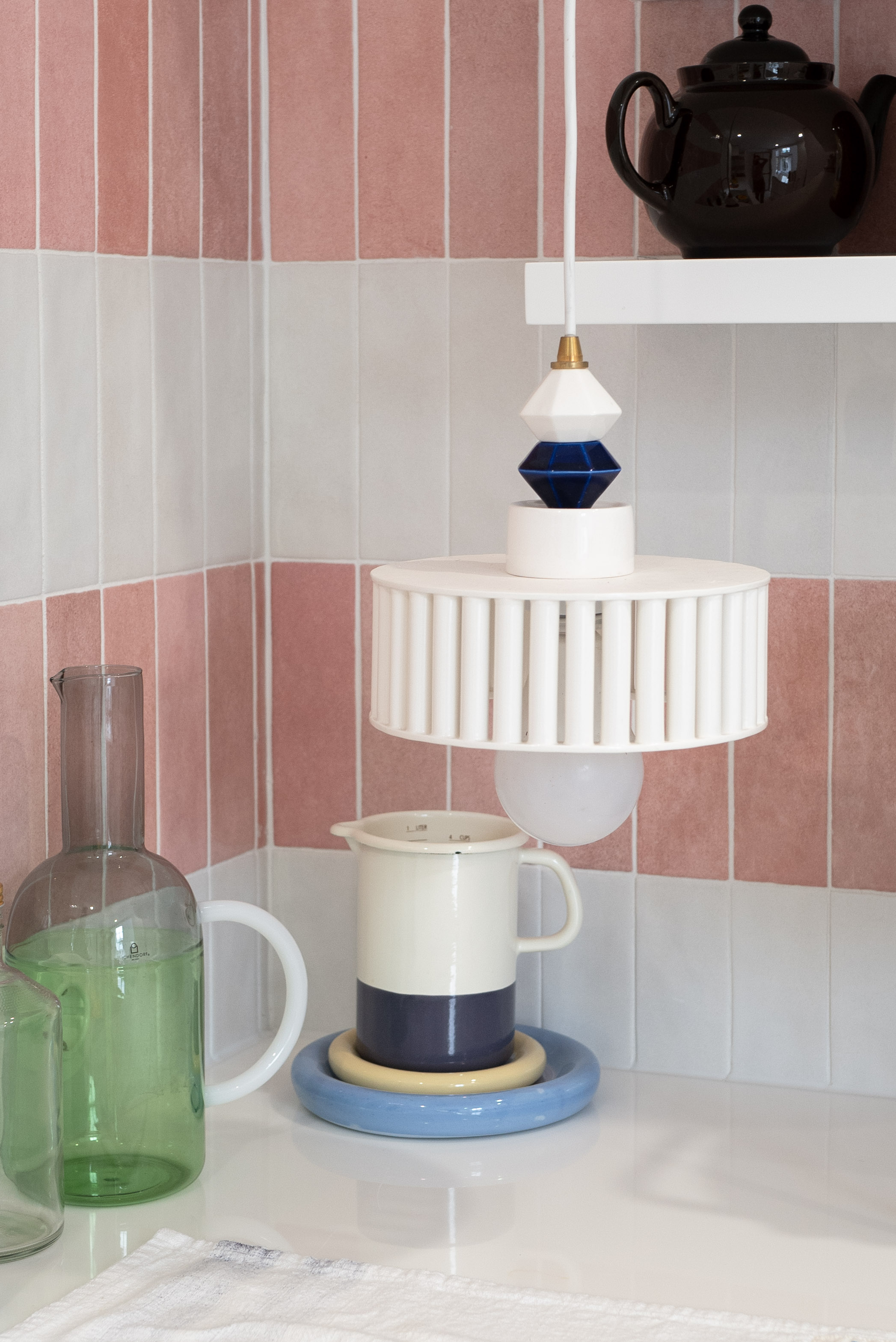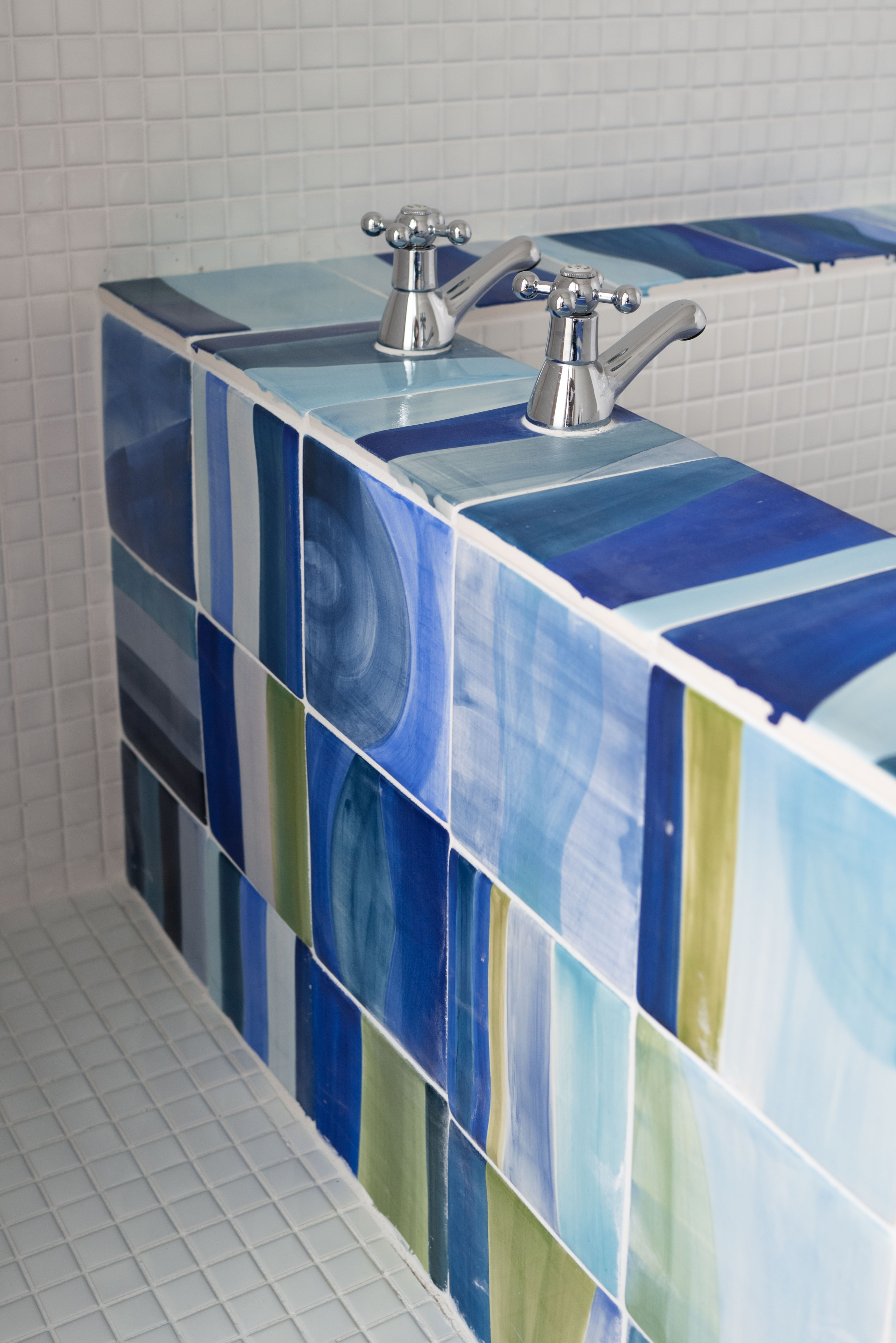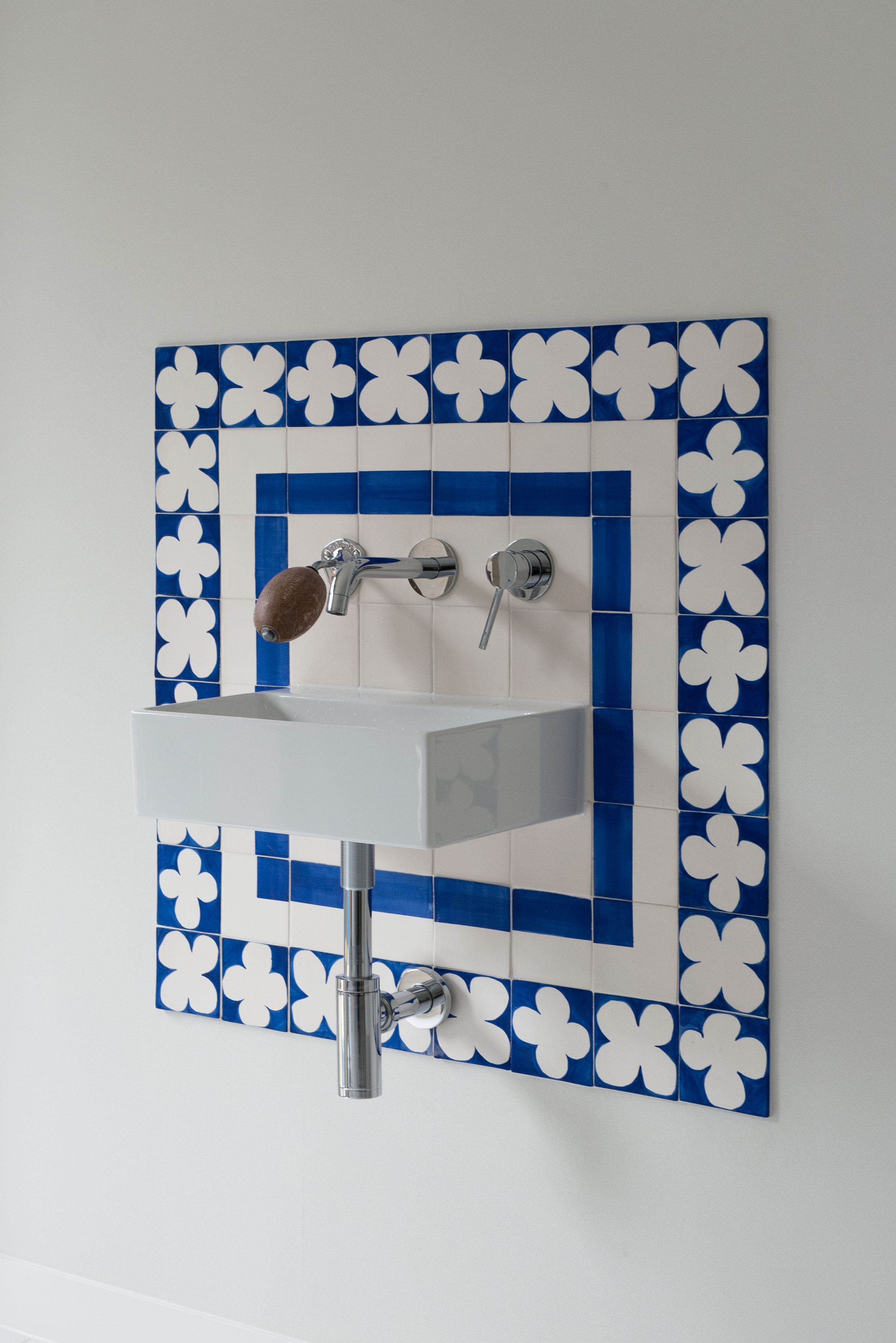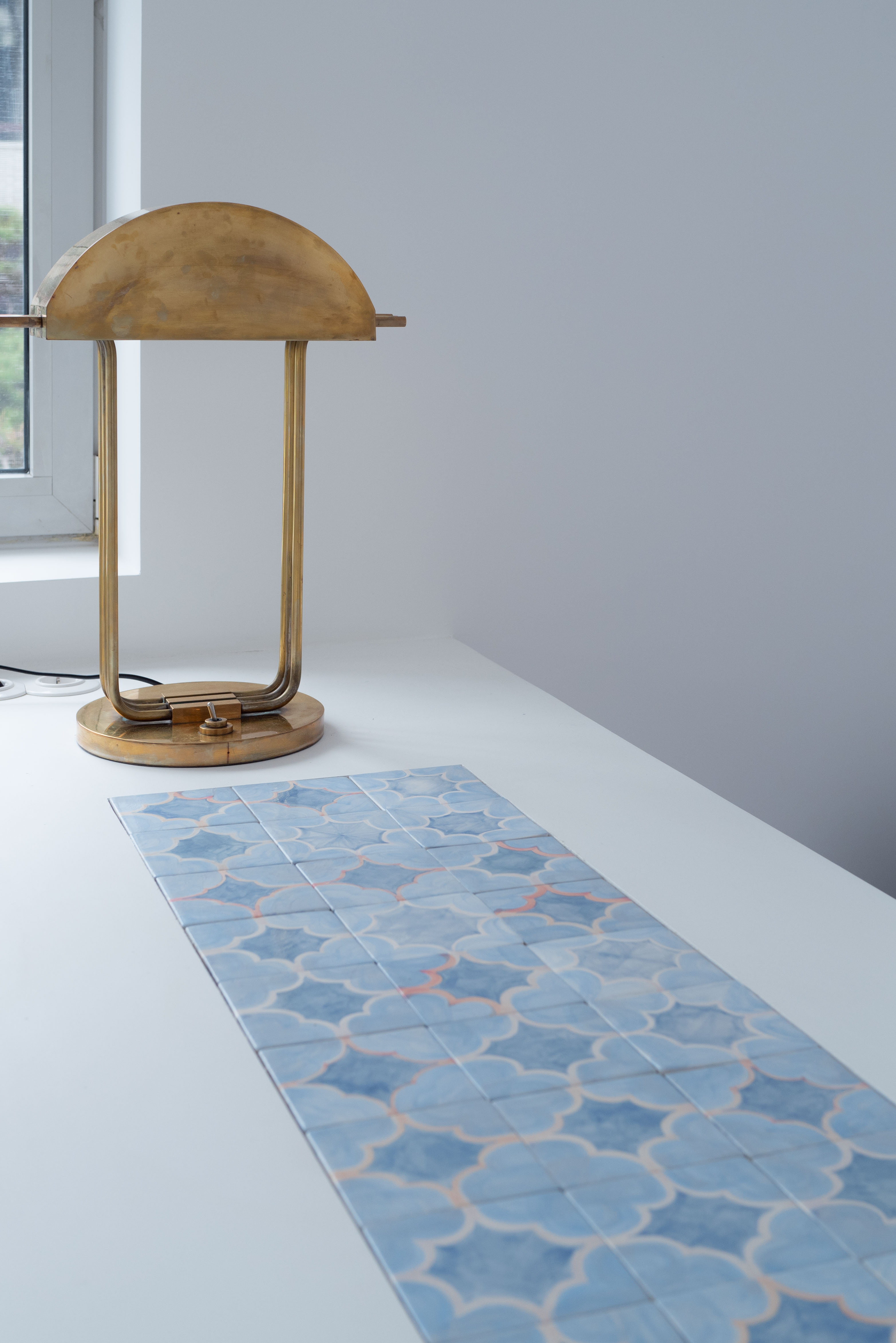 갤러리처럼 깨끗한 백색의 배경에서 빛나는 금속 소재와 클라이언트의 작업들이 단조로울 수 있는 공간에 생기를 더한다. 서윤정 작가가 직접 그린 패턴과 회화작업은 카펫과 타일등의 형태로 변형되어 공간 곳곳을 채우고있다.