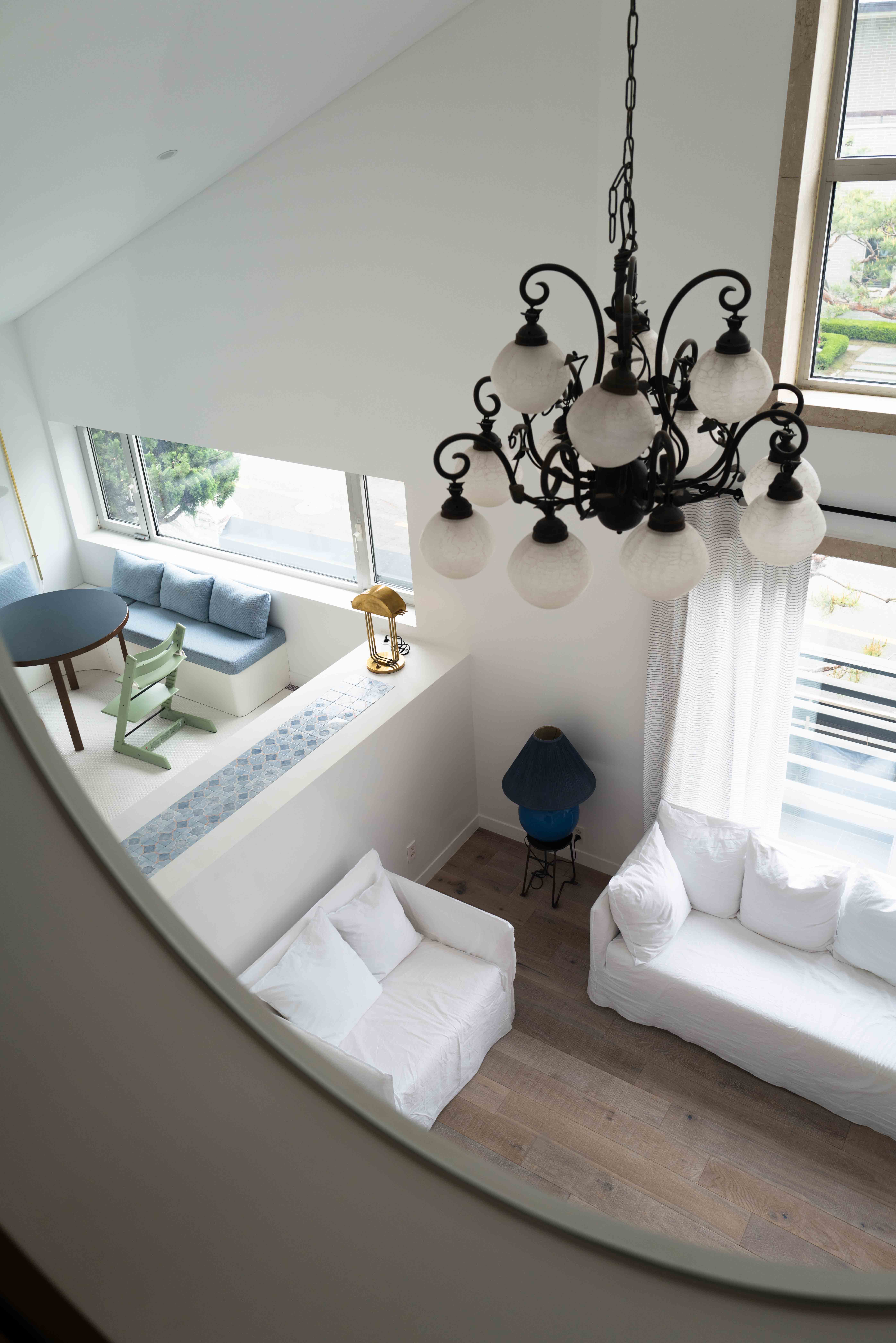 건물의 큰 구조와 빈티지한 디자인의 계단 난간, 2층의 복층 구조를 채우고 있는 샹들리에, 대리석 장식등 오래되어도 그자체로 아름다움을 지니고 있는 형태는 일부 유지하면서도 이외의 부분은 깨끗한 백색으로 정리하며 새로 들어오는 것들과 오래된것들이 잘 어우러 질 수 있도록 디자인했다.
