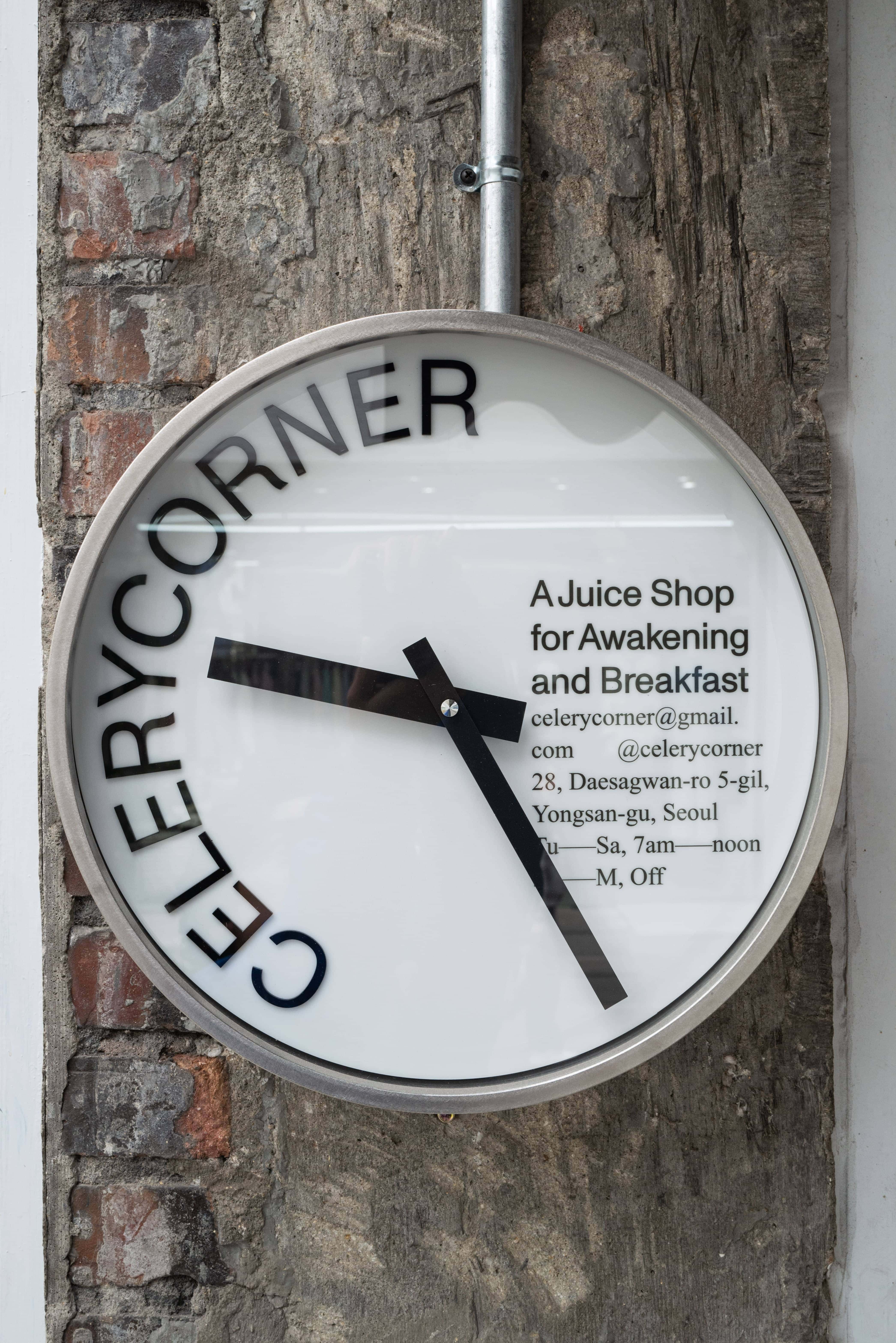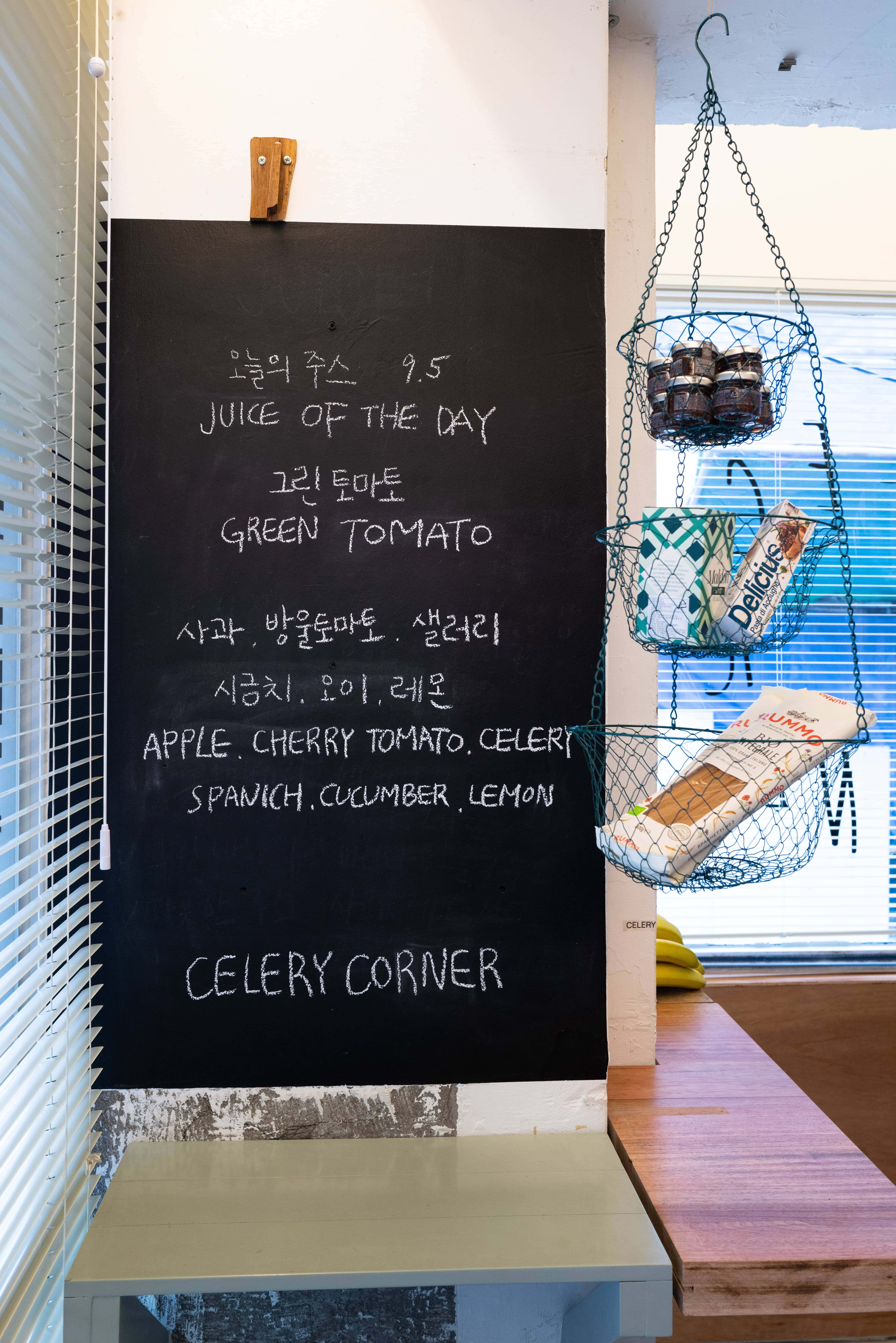 이태원 한남동에 오랫동안 자리를 지켜온 샐러드셀러에서 운영하는 쥬스가게 셀러리 코너. 이른 아침 움직이는 사람들을 위해 오전 7시부터 신선한 쥬스와 빵을 제공한다.