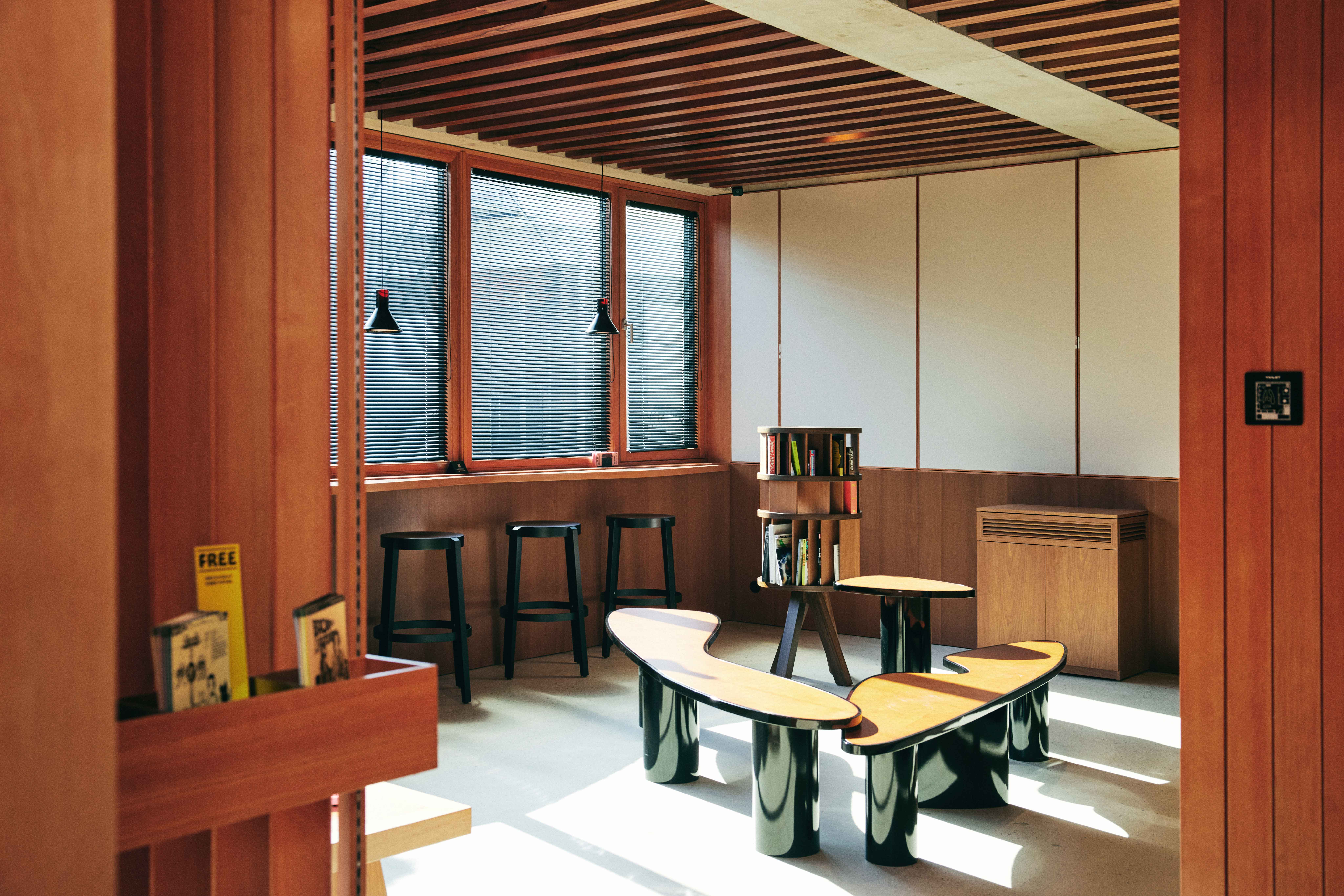 2층 라운지 공간의 크기 대비 많은 사람들이 충분히 여유롭게 이곳을 즐길 수 있는 레이아웃, 가구 구성 방법에 대한 고민이 담겨있다.