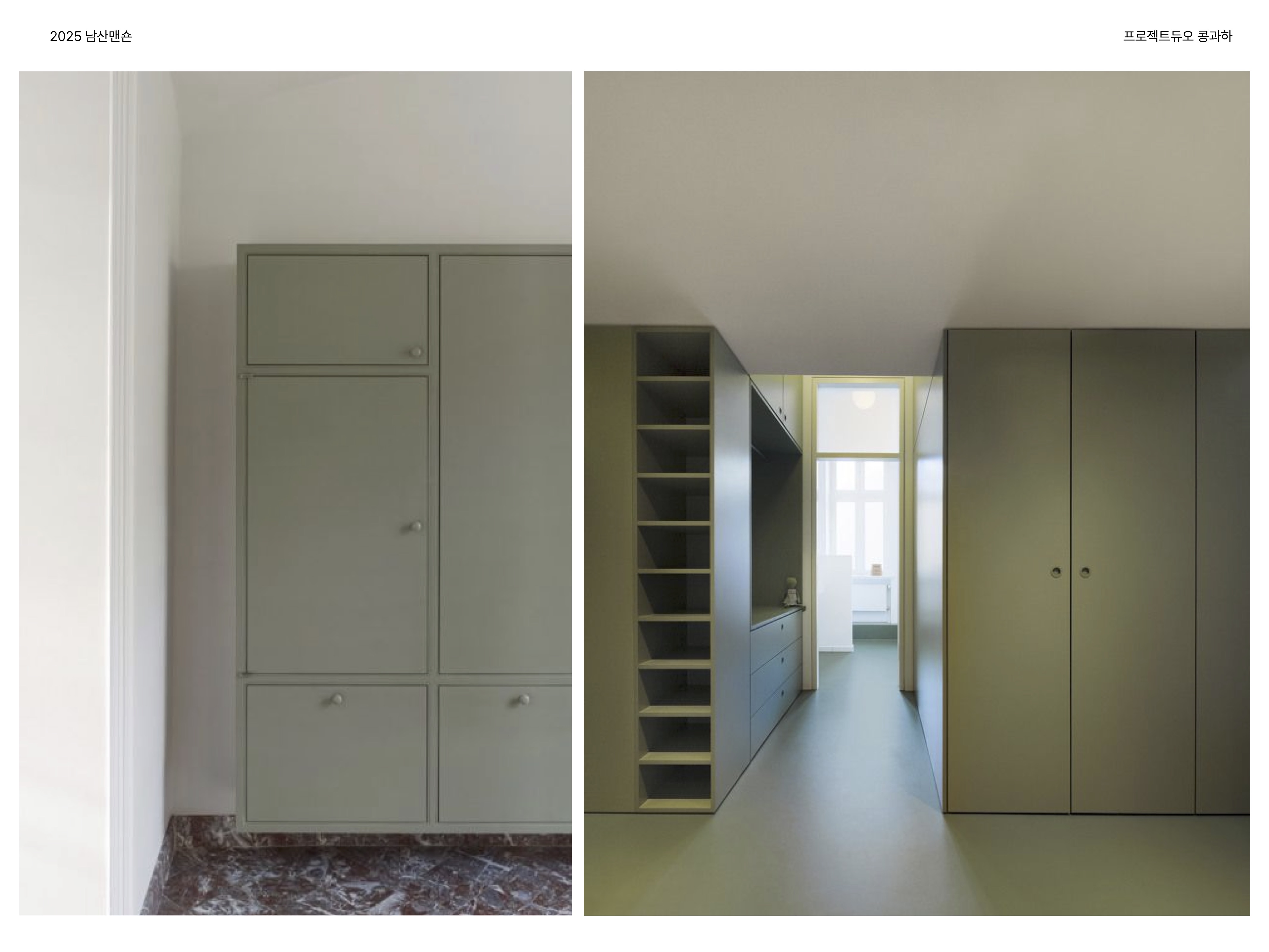아름다운 남산 소월로를 따라가다 보면 한 동짜리 독특한 아파트 남산맨션이 있다. 1972년 준공된 남산맨션은 건립 당시 호텔로 계획되었던 덕에, 복도를 중심으로 양방향으로 각 호실에 들어가도록 되어 있다. 이 구조 덕분에 어느 곳에서든 아름다운 숲의 풍경을 바라볼 수 있었다. 현장을 진행하는 내내 이곳에만 오면 '내가 서울 한복판에 있는 게 맞나?'라는 생각이 들 정도였다.
