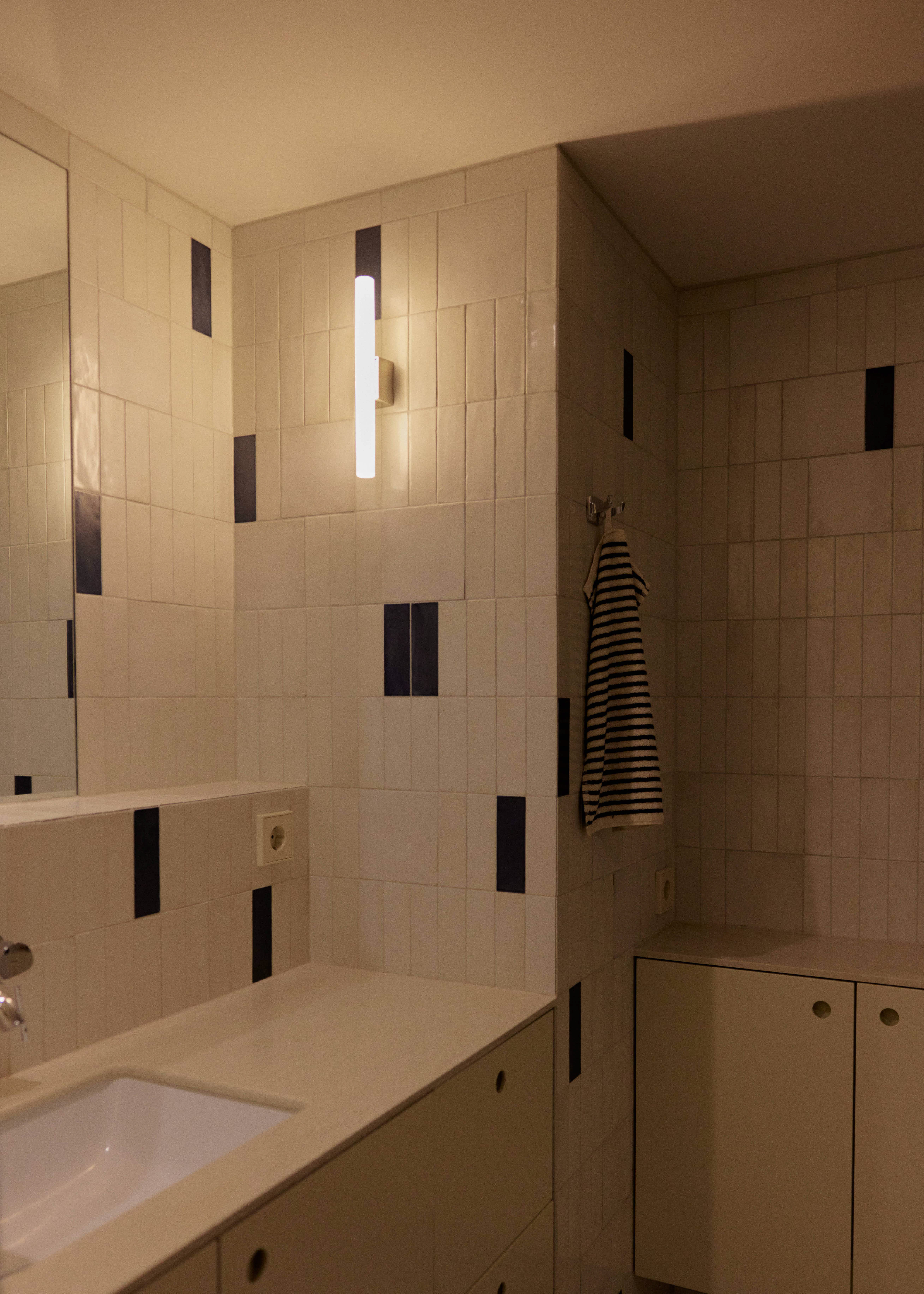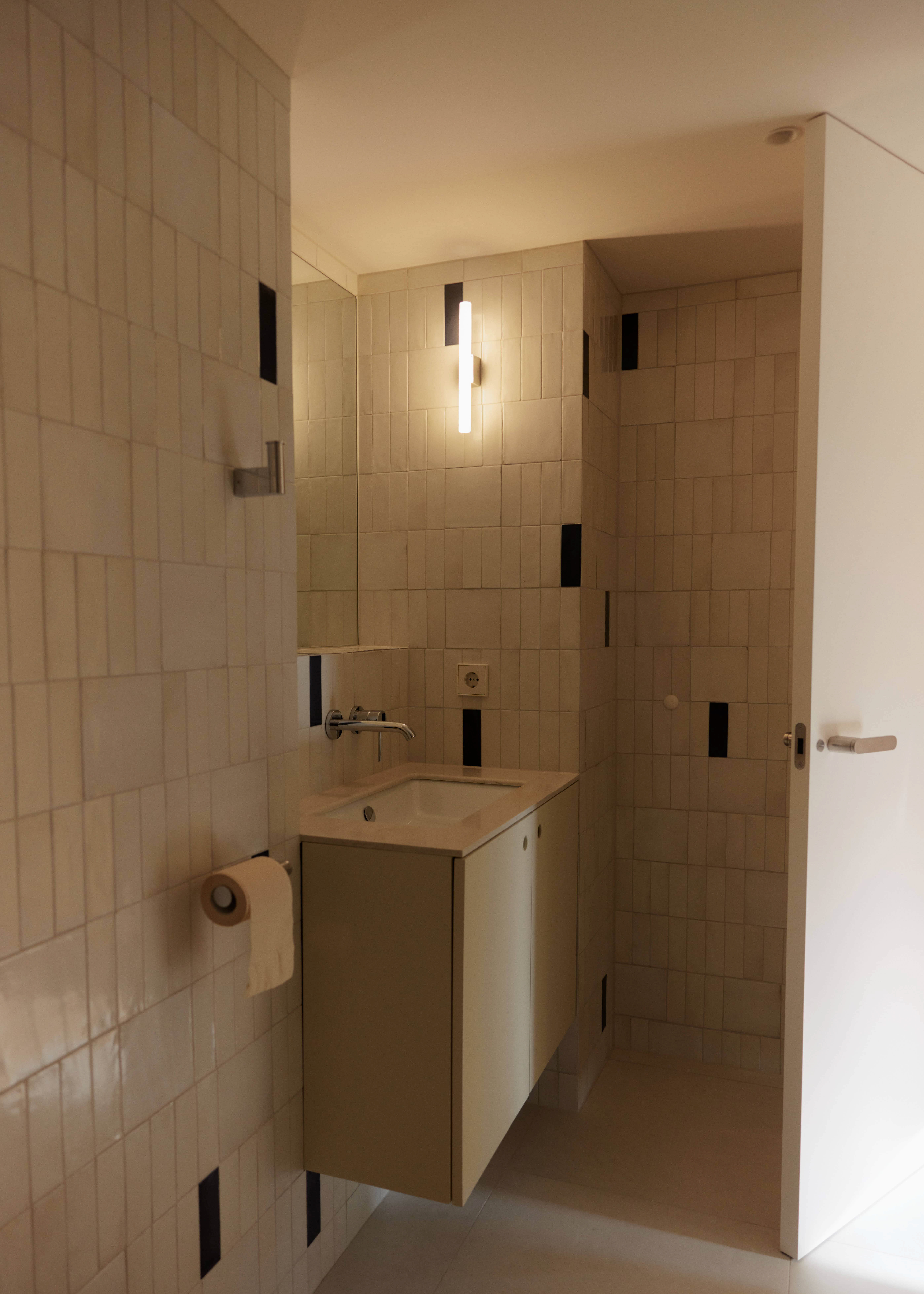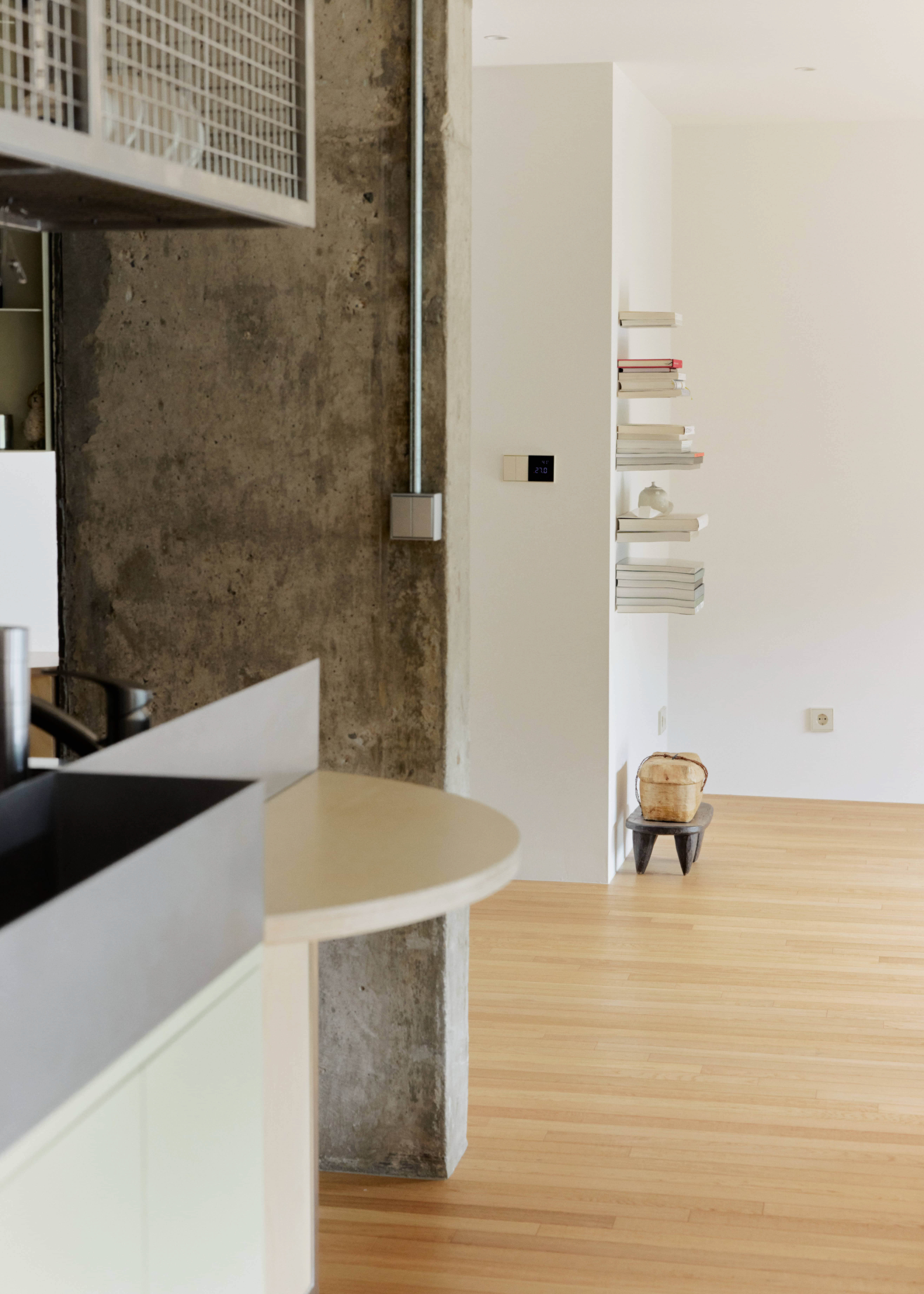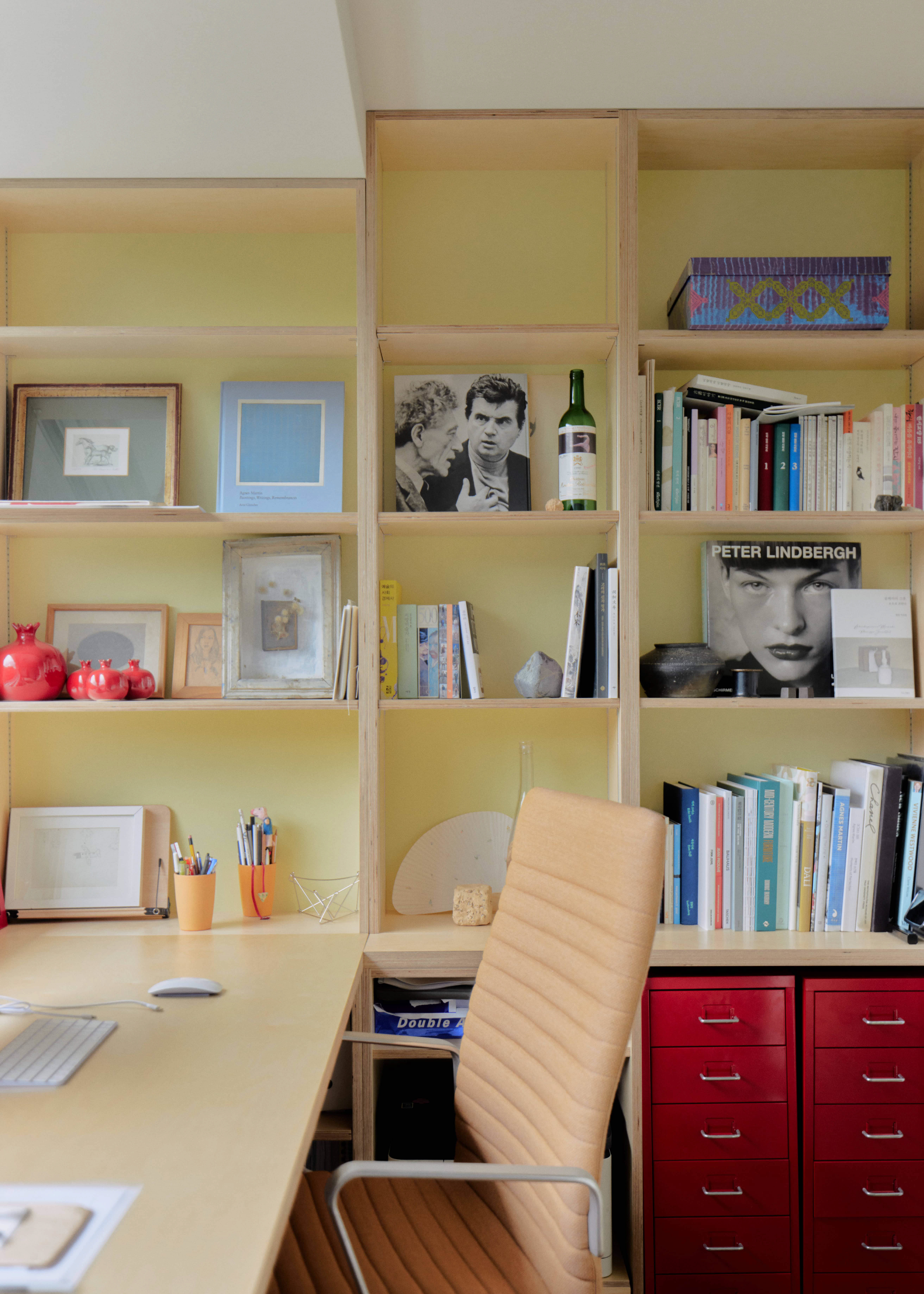 전반적인 공간의 색감과 소재는 클라이언트의 요청에 따라 따스하고 밝은 분위기로 함께 골랐다. 밝은 자작나무 합판과 스테인리스로 만든 주방 가구, 금속 책장, 공간을 분할해 주는 슬라이딩 벽체 등 곳곳에 은은한 찻물을 닮은 색감을 담았다.