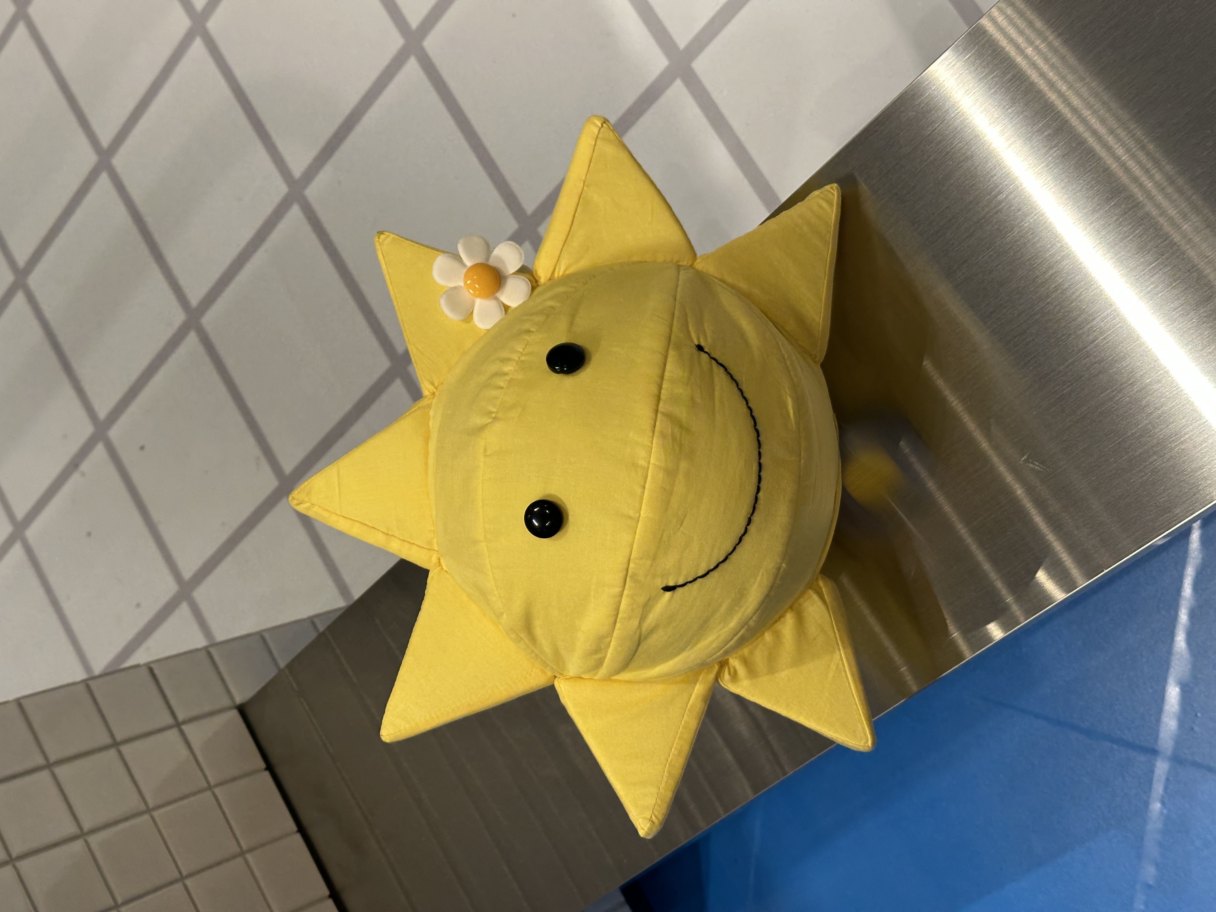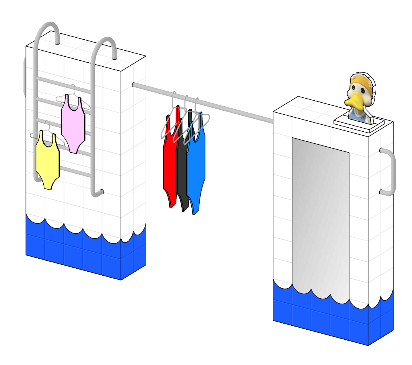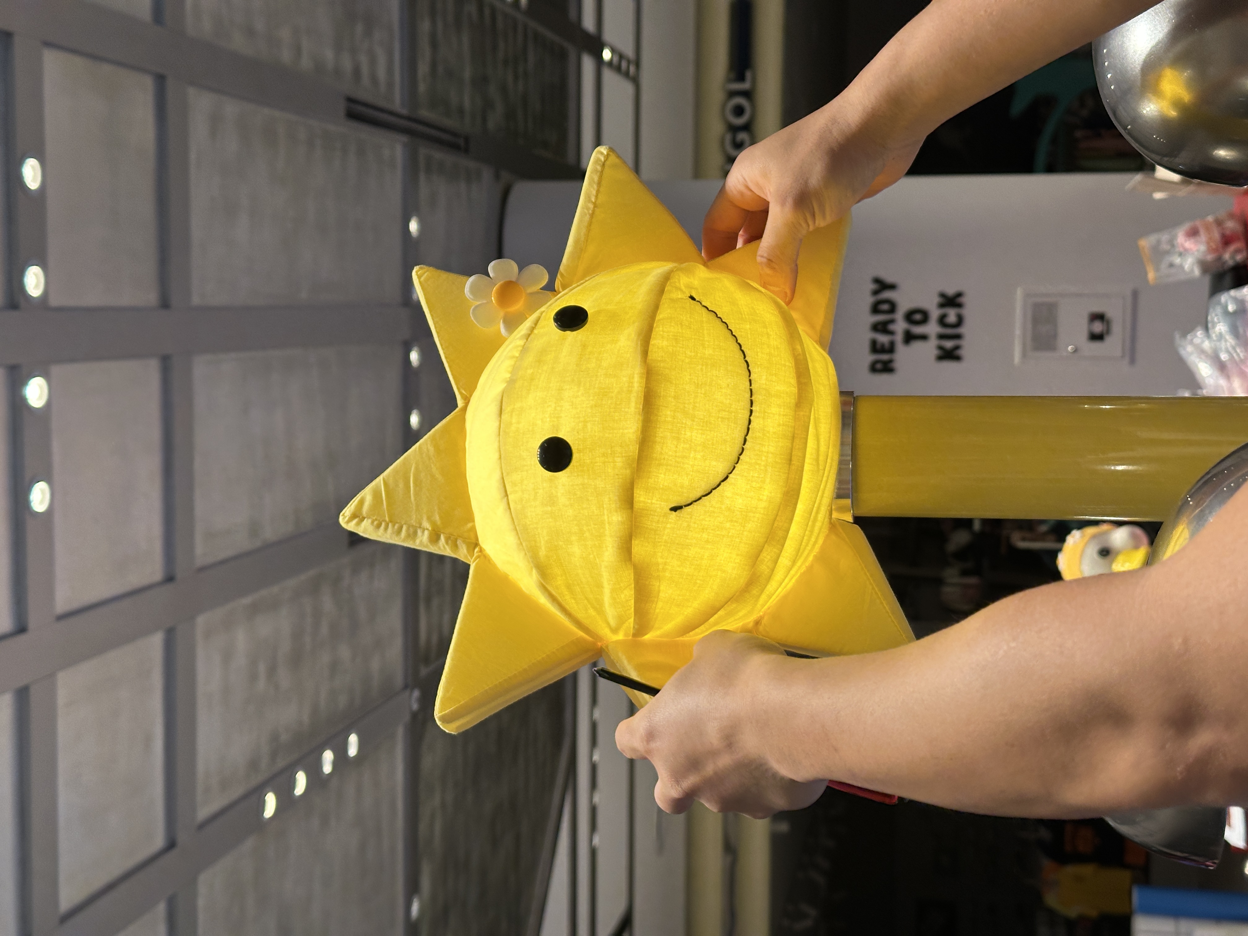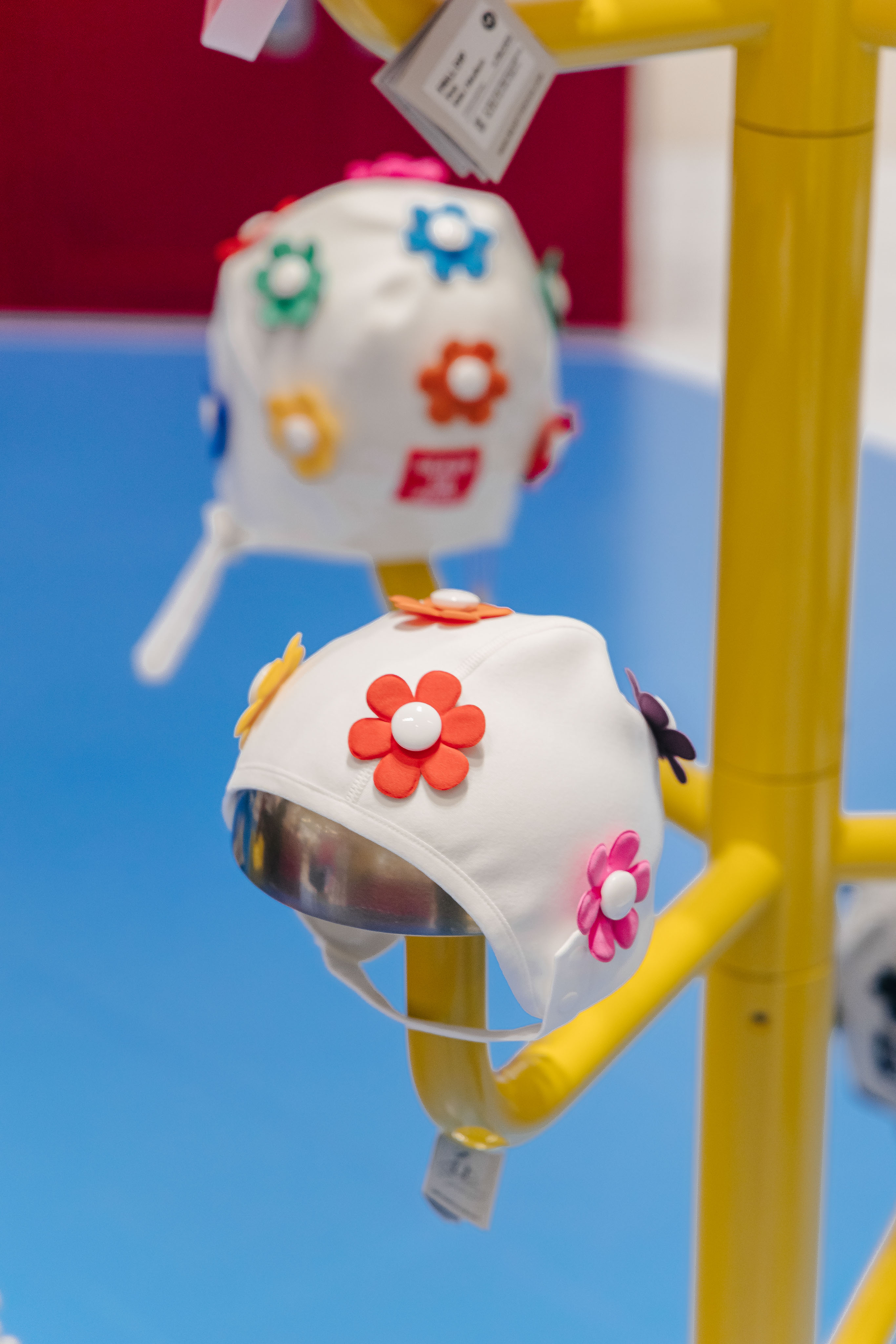 레디투킥의 핵심 아이템인 꽃 수모를 멋지게 보여주기 위해 늘 미소를 띄고 빙글빙글 팔을 돌리며 우리를 바라다봐 줄 것같은 햇님 행거, 그리고 수영장에서 모티브를 얻어 타일로 마감한 디스플레이 가구를 제작했다.