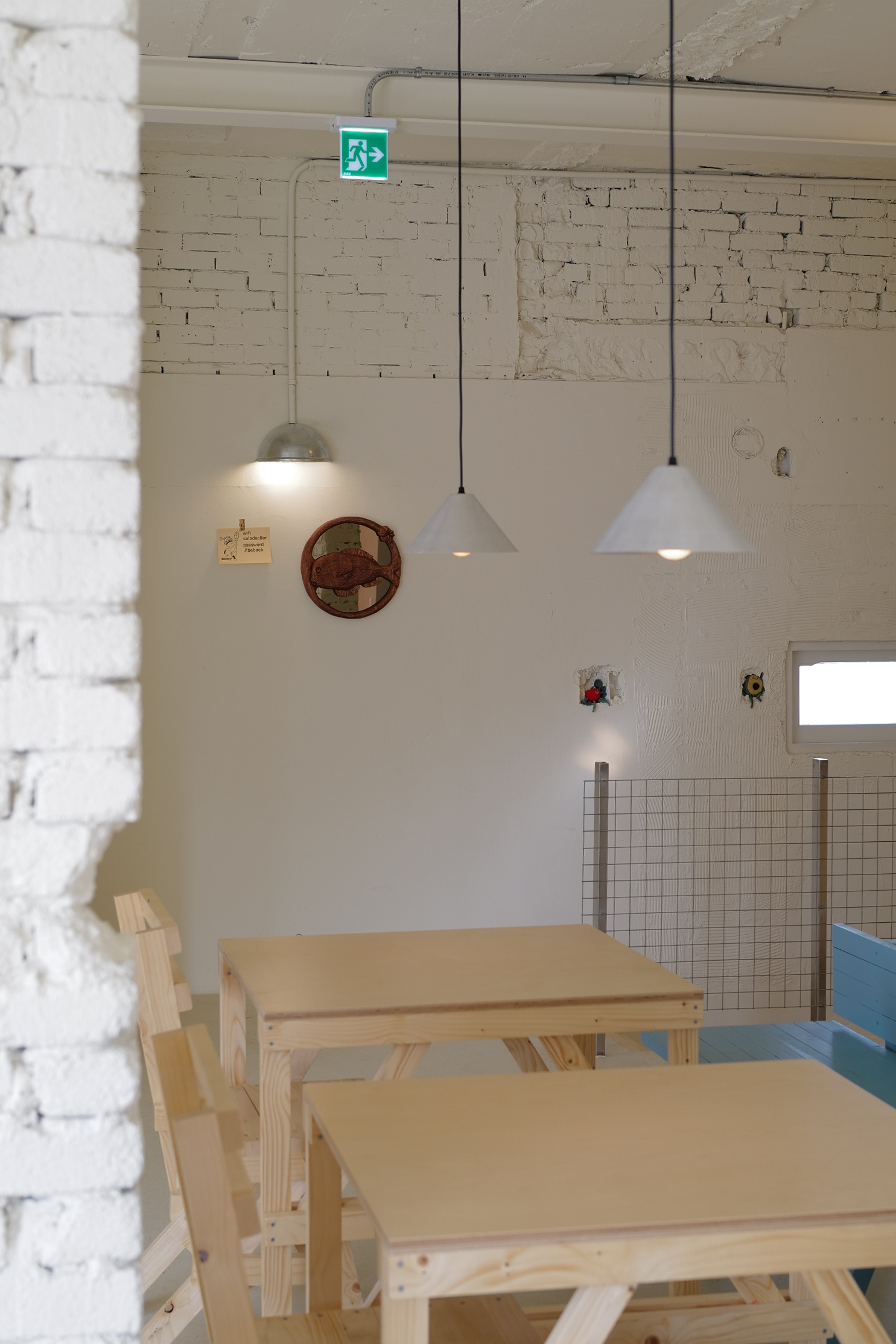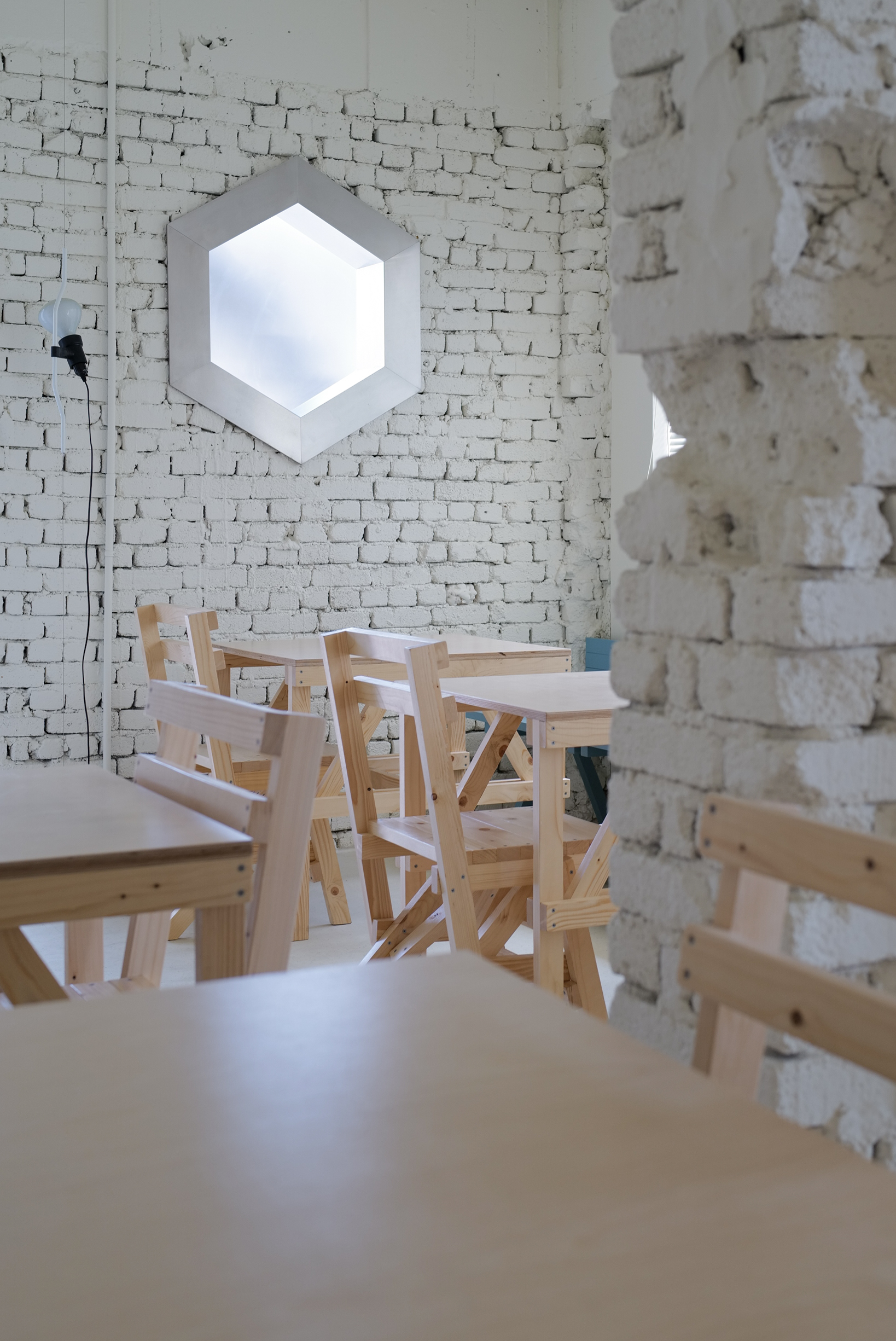 기존 가구를 그대로 사용한 1층과 달리 2층은 기존의 가구와 새로운 가구가 다양하게 함께 쓰일 수 있도록 했다. 새로운 가구는 디자이너 '엔조마리'의 오픈소스를 활용해 의자와 테이블을 제작했다. 깨끗한 벽과 밝은 나무결이 전체적으로 공간을 감싸고 어두운 올리브컬러의 타일벽체, 하늘색 벤치, 은빛 스테인레스소재의 조명과 창문프레임을 활용해 아늑면서도 밝은 공간을 구상했다.