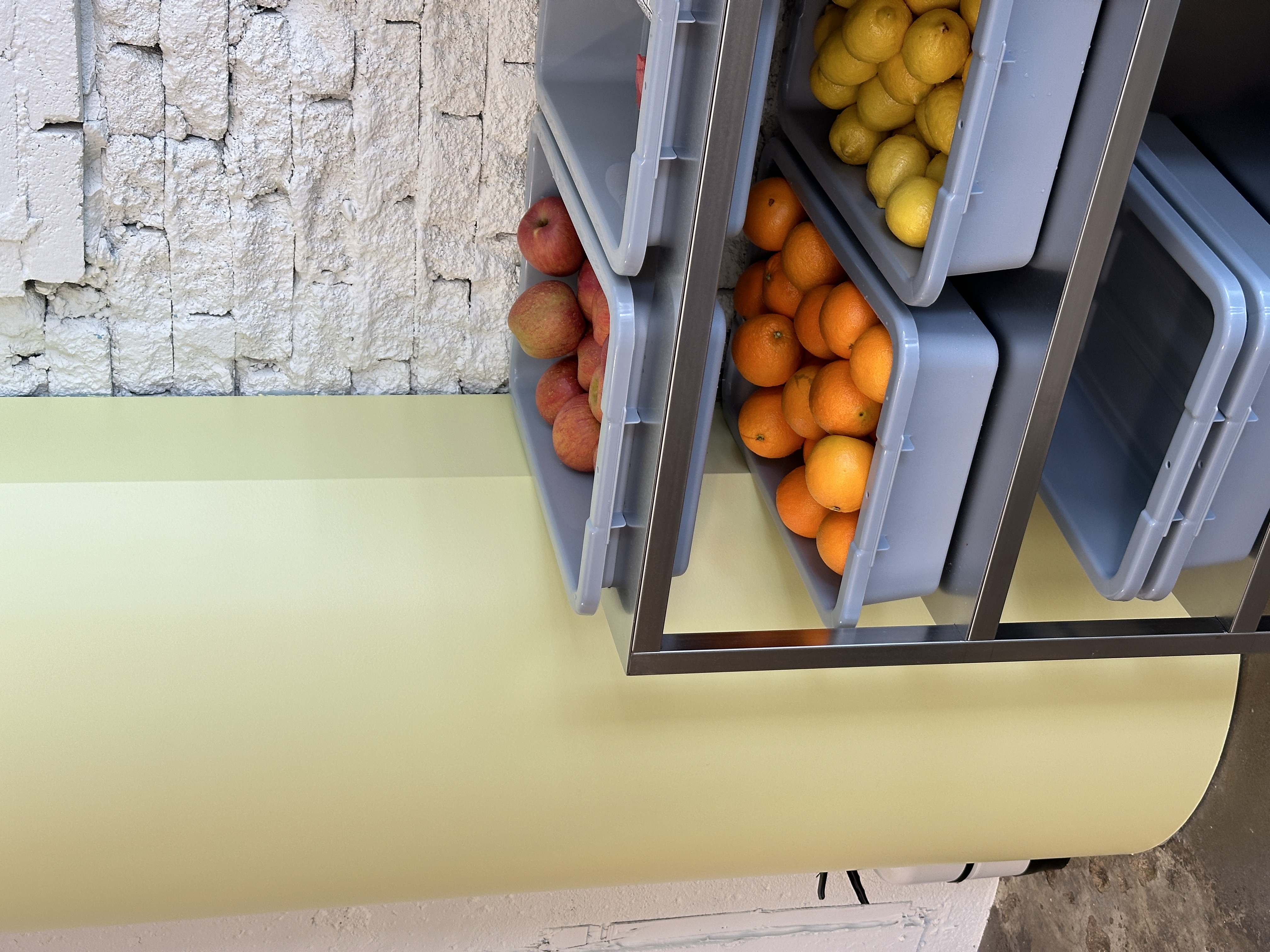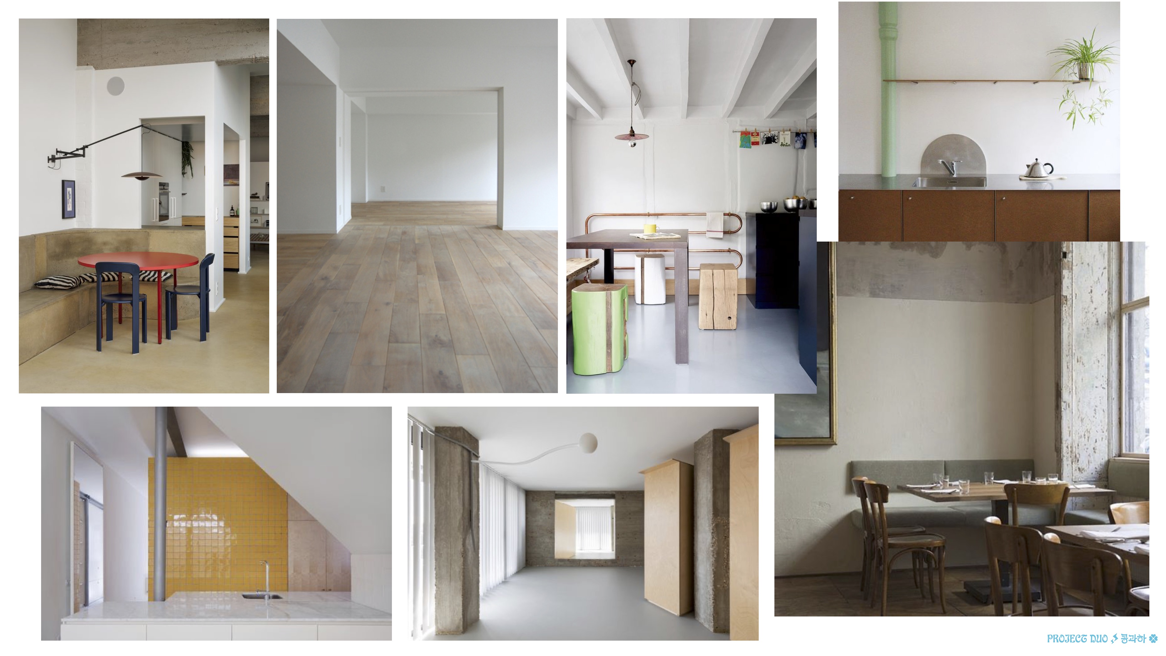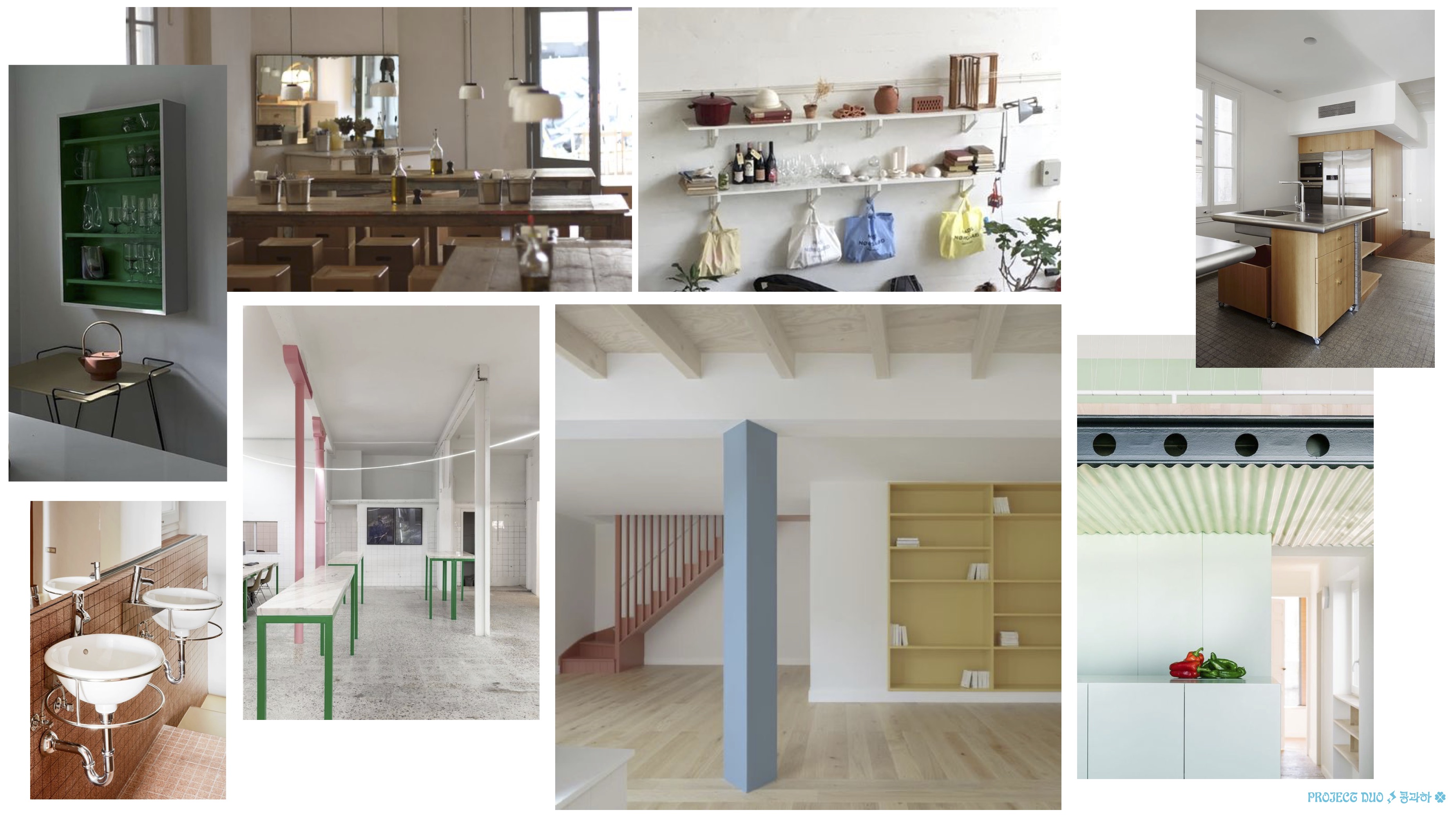 샐러드 셀러에서 판매하는 아름답고 신선한 색감의 음식들에서 영감을 받아 공간 곳곳에 다양한 색과 소재가 교차되도록 구상하였다.