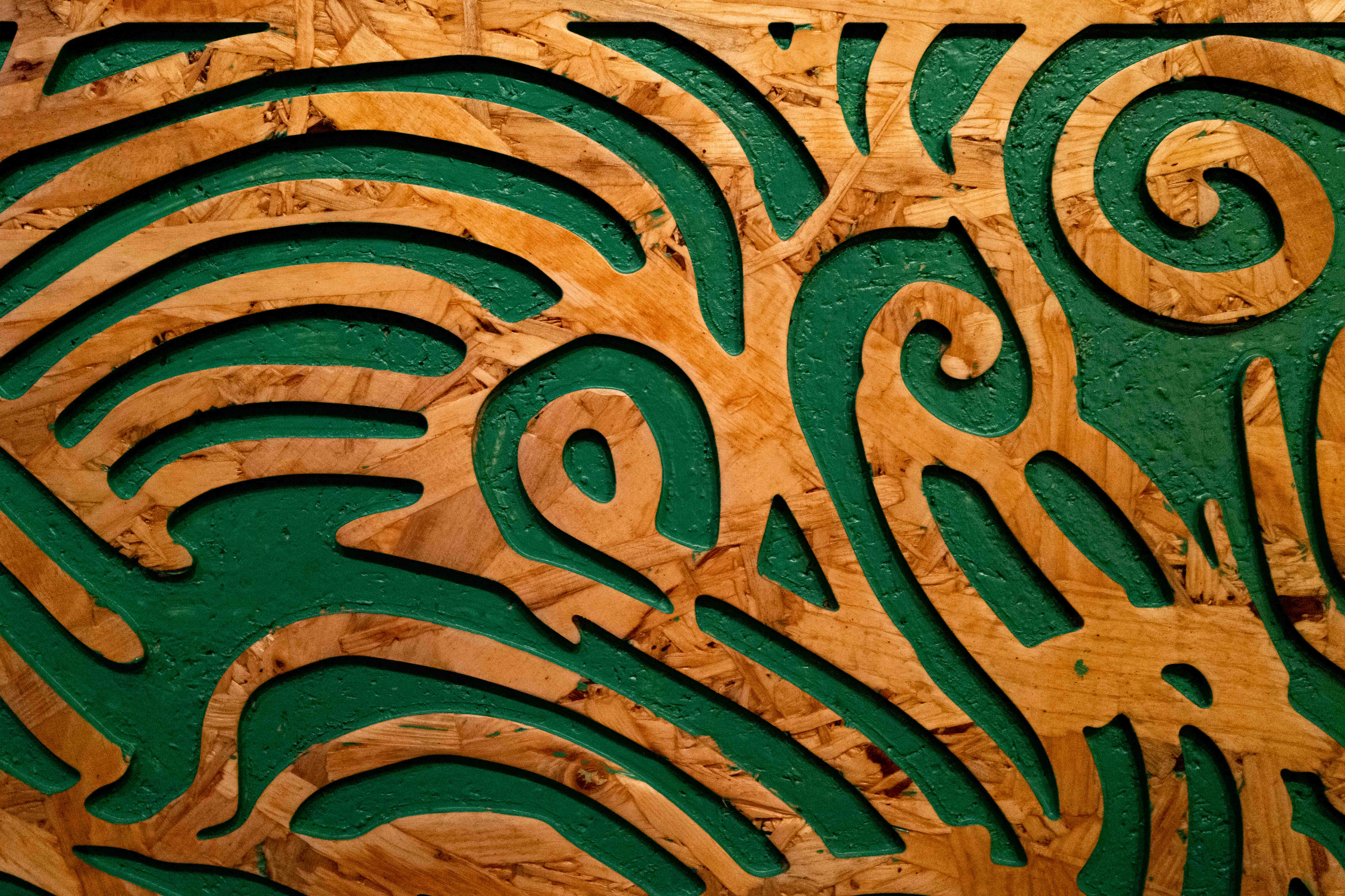 맥주탭 뒷편으로는 동양화에서 주로 사용하는 구름문양을 새겨넣었다.