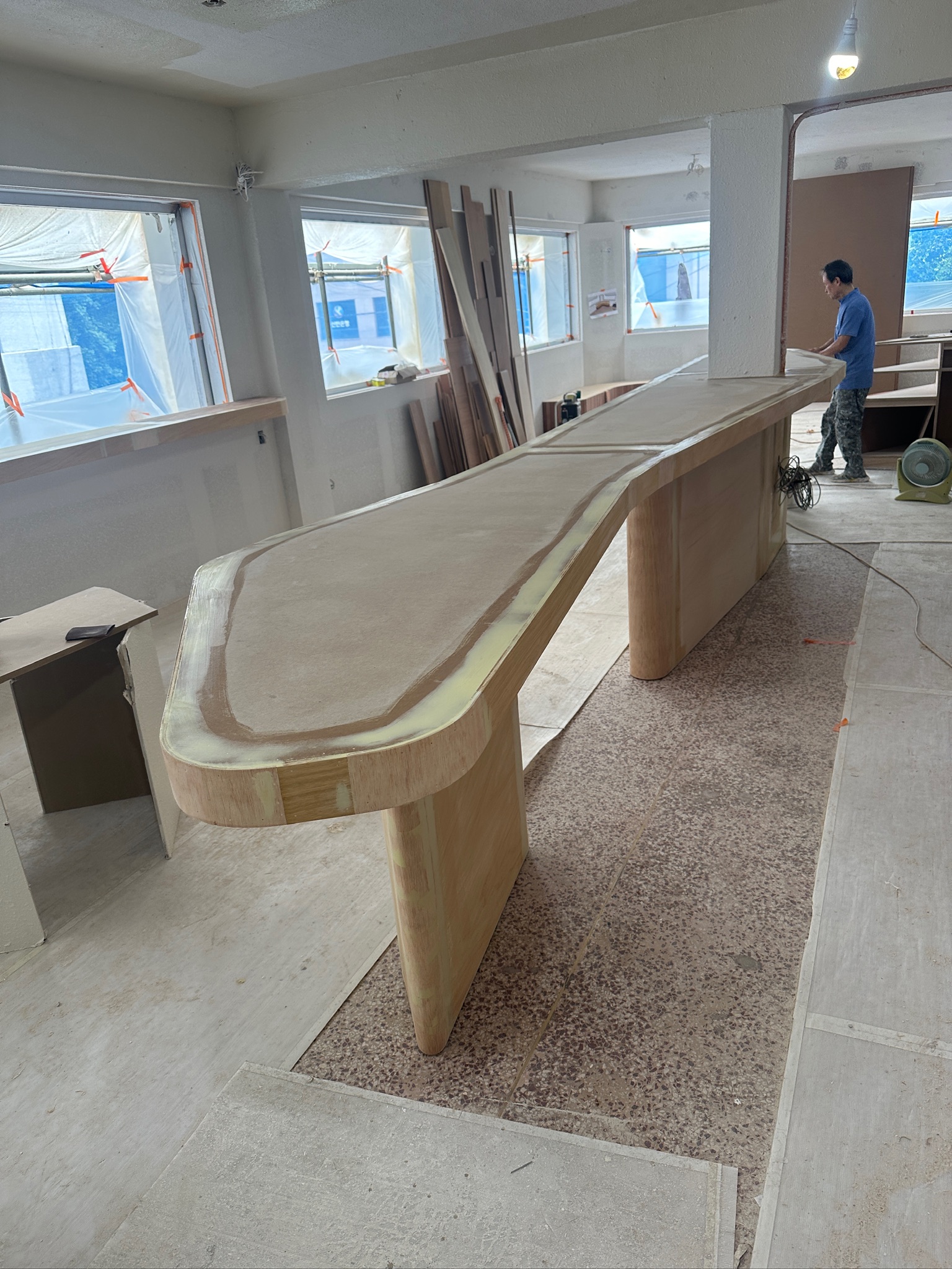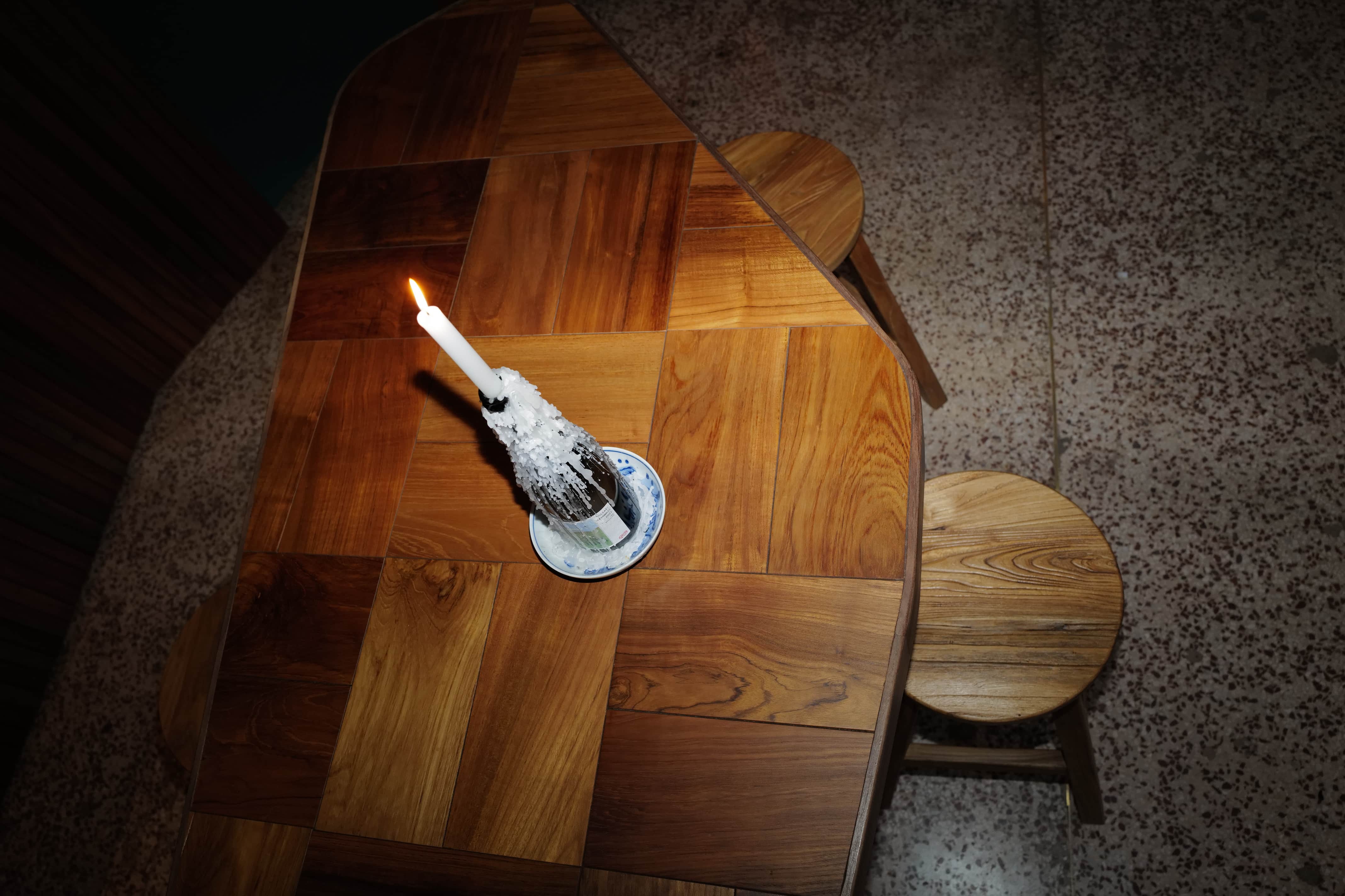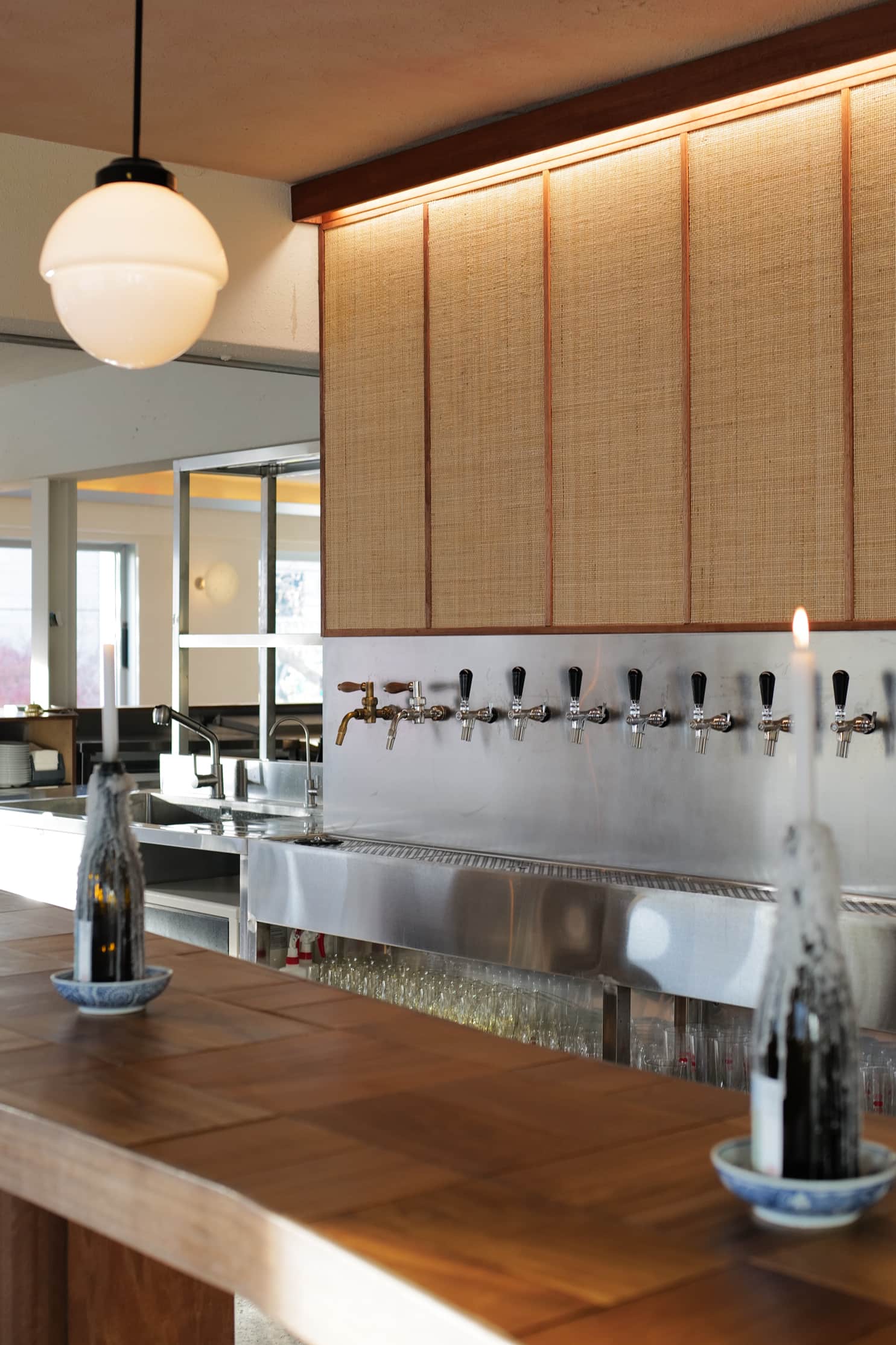 바에서 벌어지는 고객과 비어텐더의 커뮤니케이션을 고려하며, 2명 또는 3~4명의 무리 사람들까지 자유로이 뭉치고 떨어져 앉을 수 있는 바의 형태를 고민했다. 바의 소재는 티크 나무 특유의 따뜻한 분위기와 질감을 포기하고 싶지 않아 원목 중에서도 물에 강한 소재를 택했다.