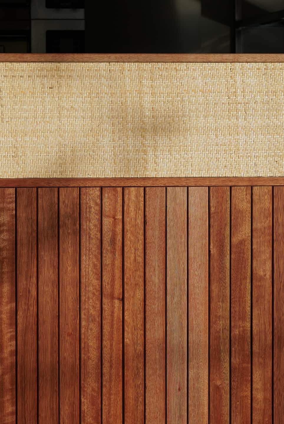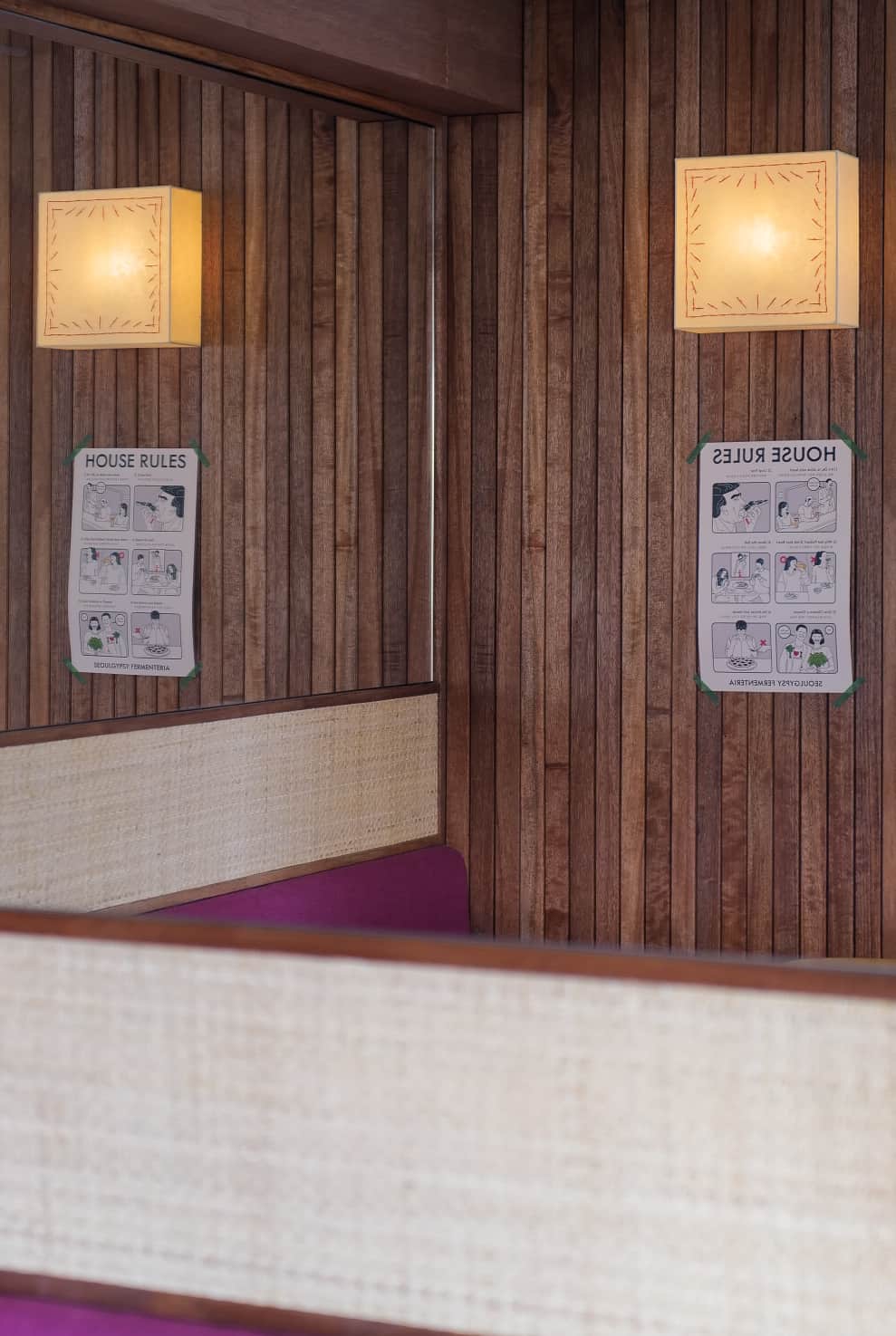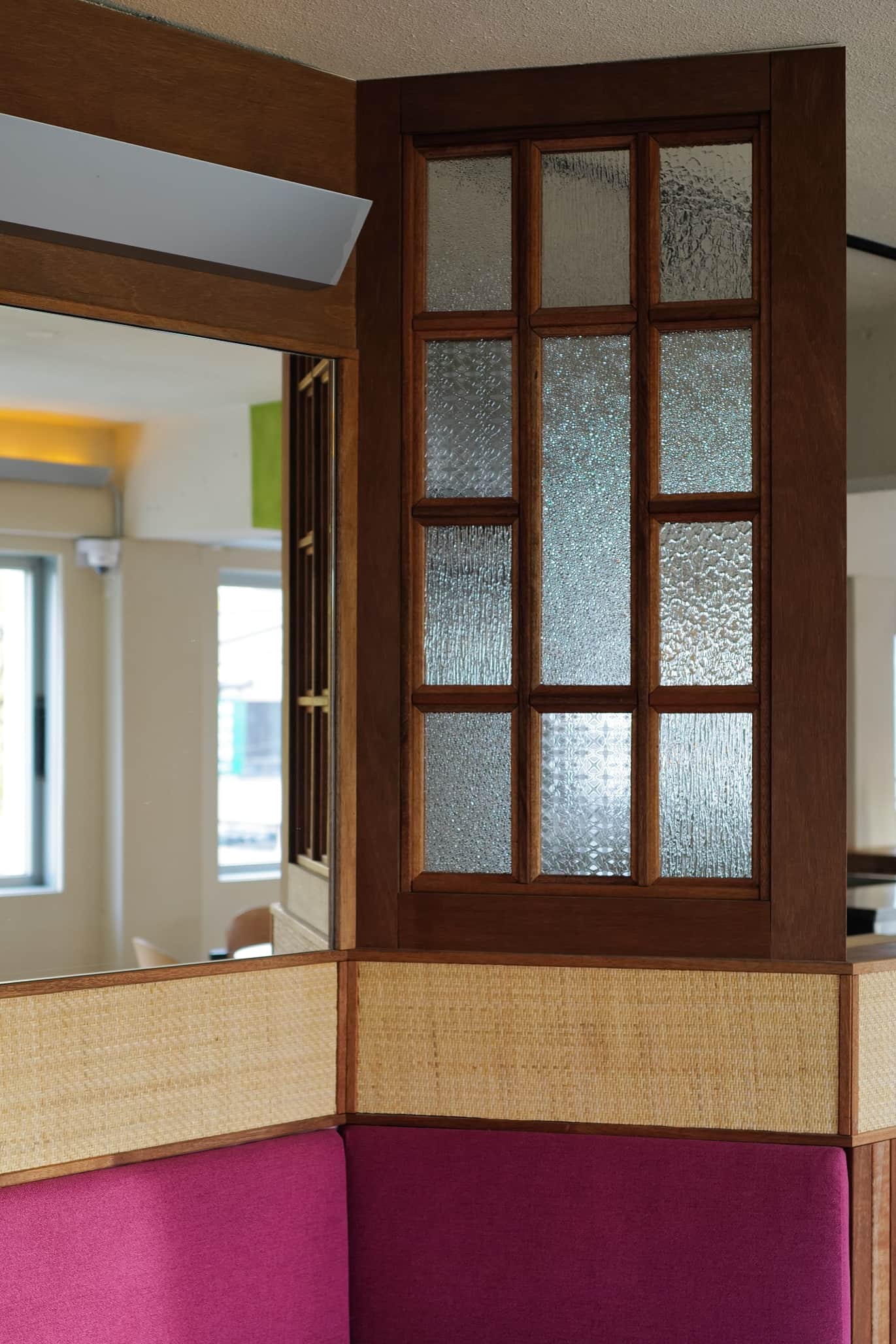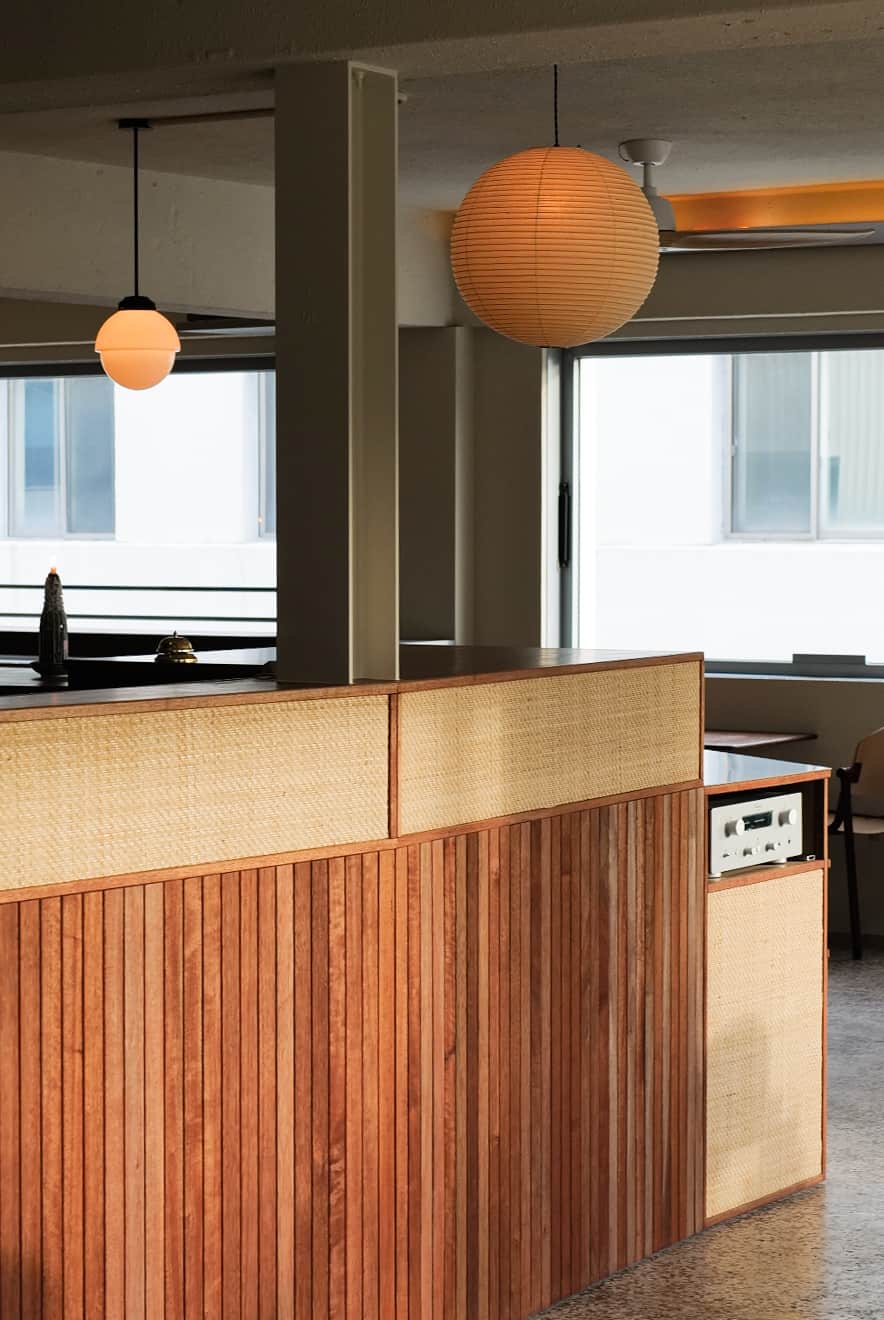 집시 특유의 자유분방하고 컬러풀한 동남아스러운 무드는 라탄 소재와 좁다란 루버, 자주색과 청록색의 패브릭, 직접 제작한 조명 갓의 스티치 디테일 등을 활용해 풀어 넣었다.